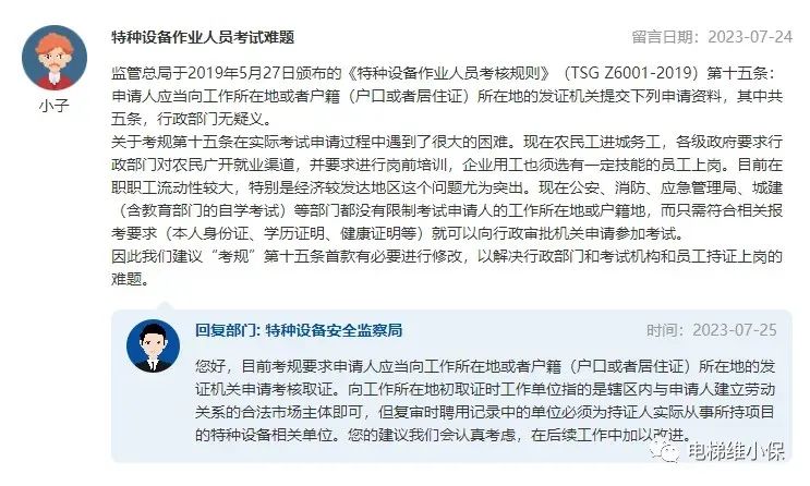 关于考规第十五条在实际考试申请过程中遇到了很大的困难。现在农民工进城务工,各级政府要求行政部门对农民广开就业渠道,并要求进行岗前培训,企业用工也须选有一定技能的员工上岗。目前在职职工流动性较大,特别是经济较发达地区这个问题尤为突出。现在公安、消防、应急管理局、城建(含教育部门的自学考试)等部门都没有限制考试申请人的工作所在地或户籍地,而只需符合相关报考要求(本人身份证、学历证明、健康证明等)就可以向行政审批机关申请参加考试。
