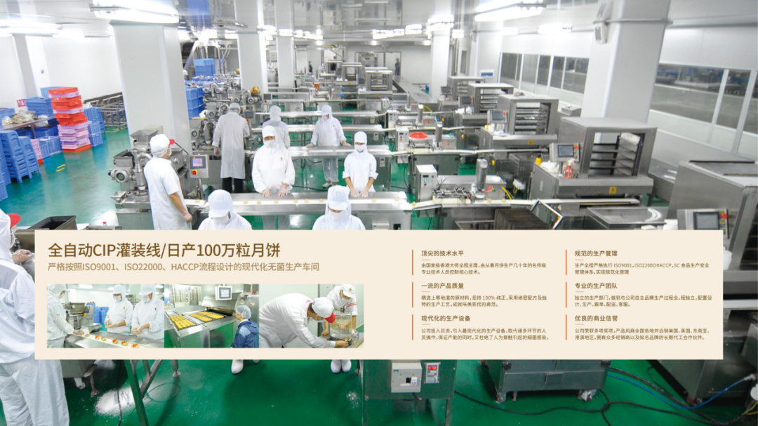 公司专业生产月饼、馅料、糕点、饼干、糖果及果冻、布丁、饮料系列食品。馅料厂有自主研发生产200多种不同口味馅料,同时服务于全国100多家五星级酒店,包含希尔顿集团、喜达屋集团、香格里拉集团、恒大集团,等世界五百强企业。公司产品畅销全国二十多个省市并远销欧美、东南亚及港澳等海外地区。同时我们还承接各系列产品的代加工。由香港名师全程主理的“品佳品月饼”,秉承传统并不断创新,屡获“中国名饼”、“行业标杆产品”等殊誉,树立了味美质优的典范。公司严格实施全面质量管理,通过了食品安全(HACCP)体系认证和ISO9001、ISO22000认证;通过了QS食品质量安全认证,公司严格按照体系标准执行。公司在保证产品质量和客户要求的前提下,公司遵循靠产量赢得市场的原则,价格在行业内具有绝对的优势。公司坚持做到“以诚信为本”的经营理念。多年的品质追求是我们企业得以发展壮大的根本,质优及务实创新使我们得到了数家世界知名品牌的青睐,先后成为迪士尼、麦德龙、沃尔玛、良品铺子、来一份以及安琪、麦轩等名牌产品授权生产商。华为工厂,天虹,万达,碧桂园,洲际酒店,深圳五洲宾馆,万科集团,BYD汽车。公司根据战略发展需要,收购了福建农场大叔公司,即丰富了公司的生产品项结构又增强公司竞争力,实现规模经济、提高经济效益的效果。