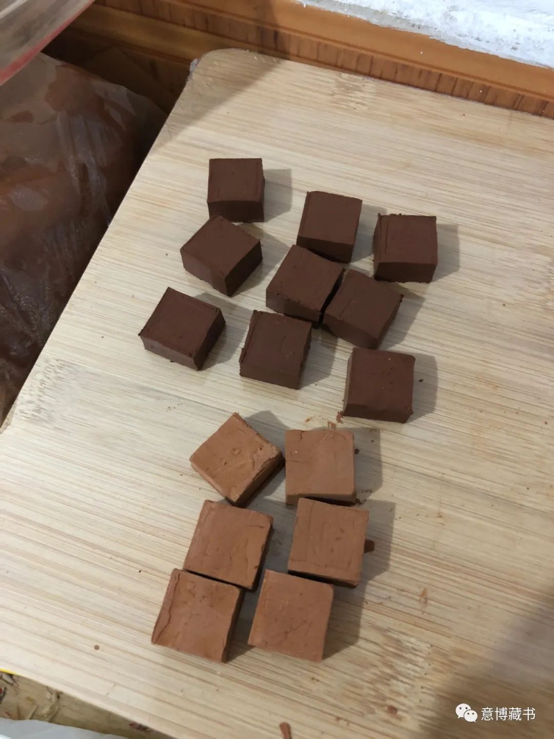 如此用密封袋密封,放到阴凉处让他自然陈化。我陈化的时候,正好有个朋友看见了这批泥料,大大的惊奇,让我务必给他烧个茶壶,我倒是也有这样的想法,等到泥活字的完全成熟,到时候也烧几个茶壶把玩把玩。陈化了大约一个星期,我拿了少许泥料,做了几个活字的字胚,期待效果。