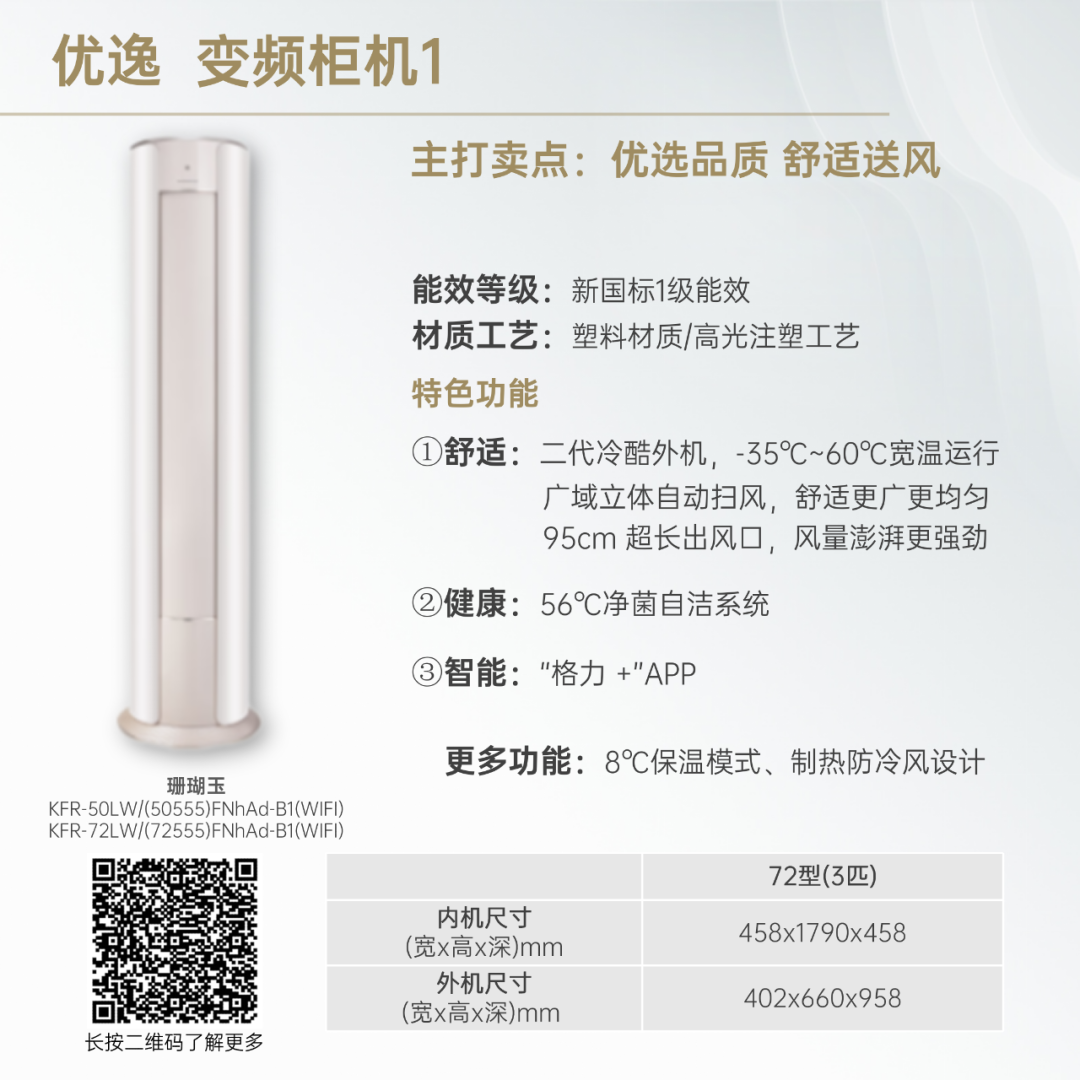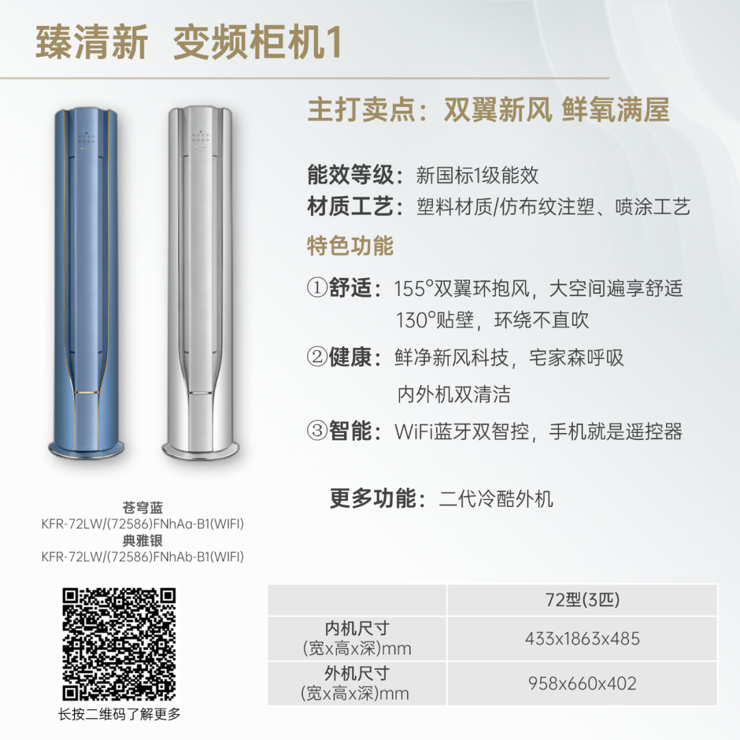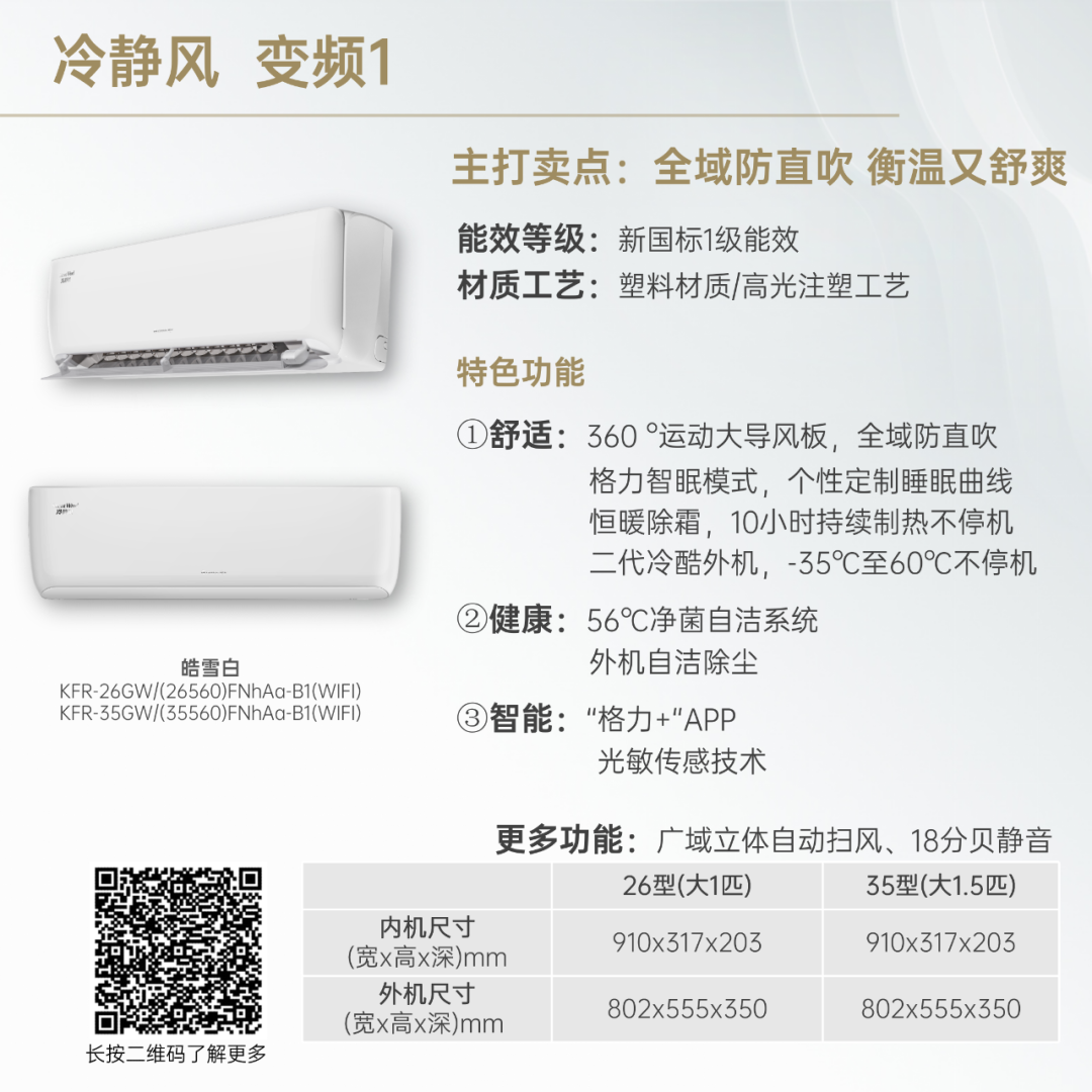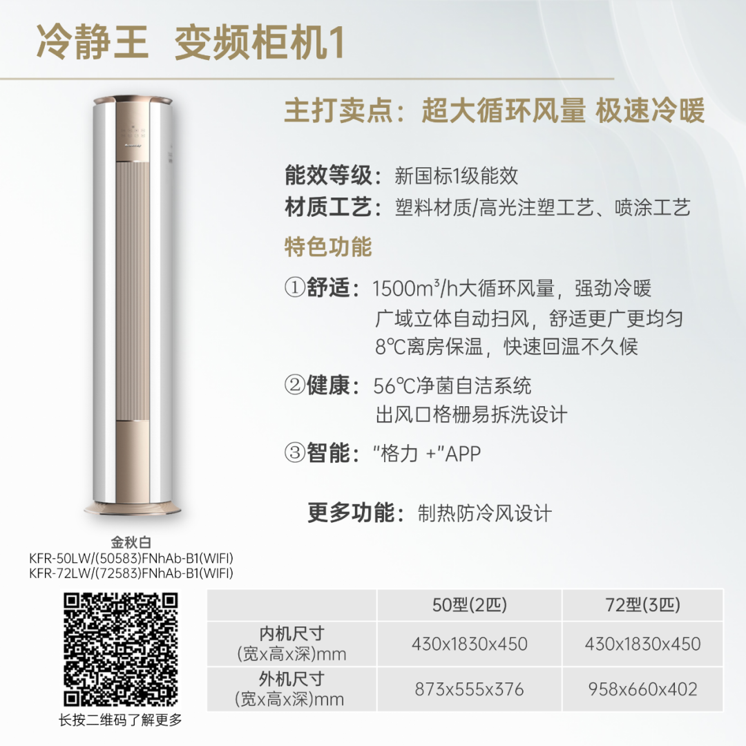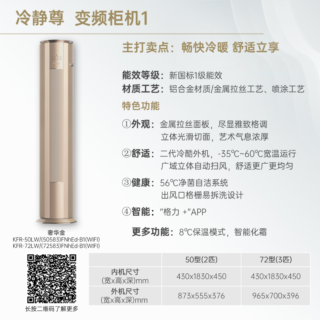 小身材,大冷量。大匹数设计,省空间更舒适!