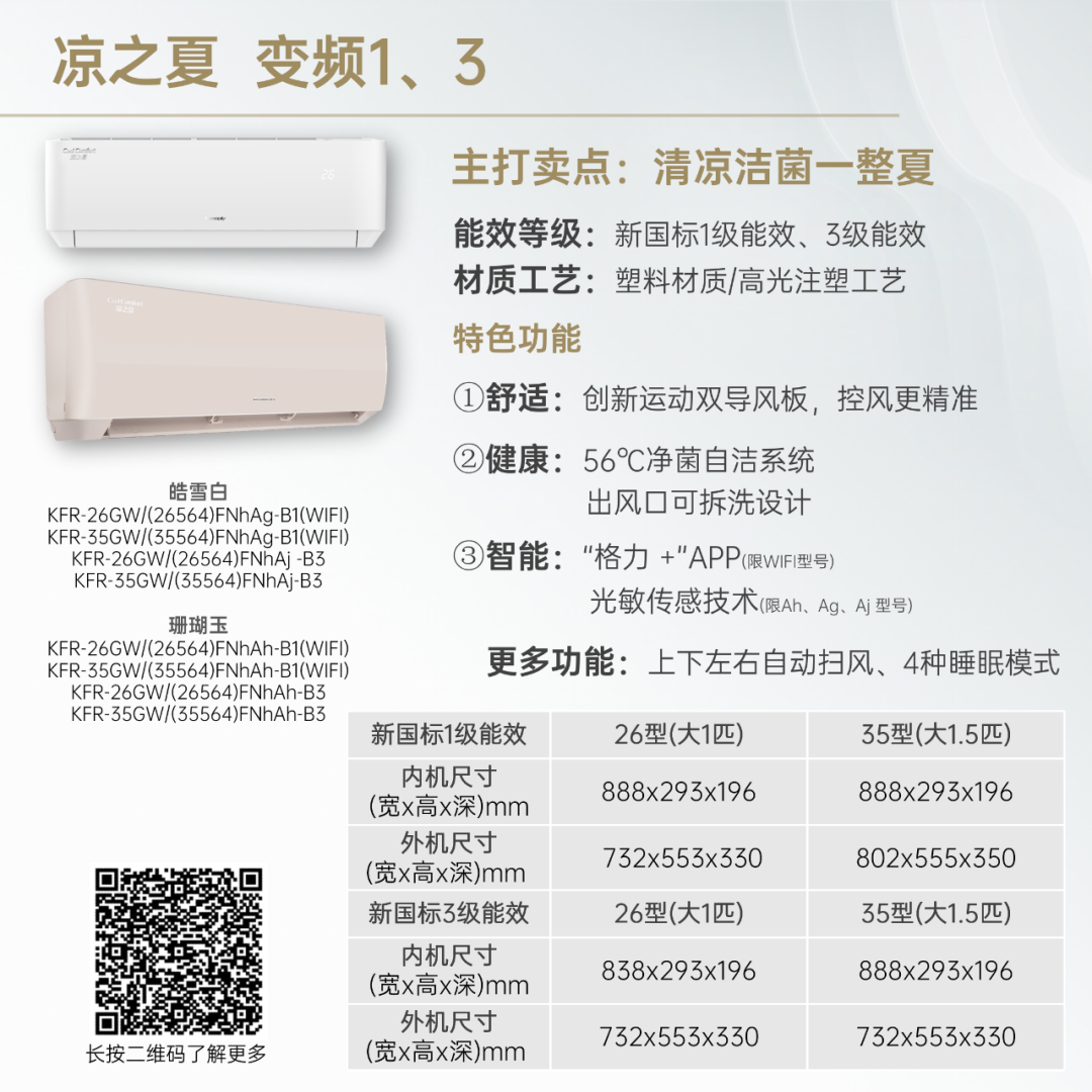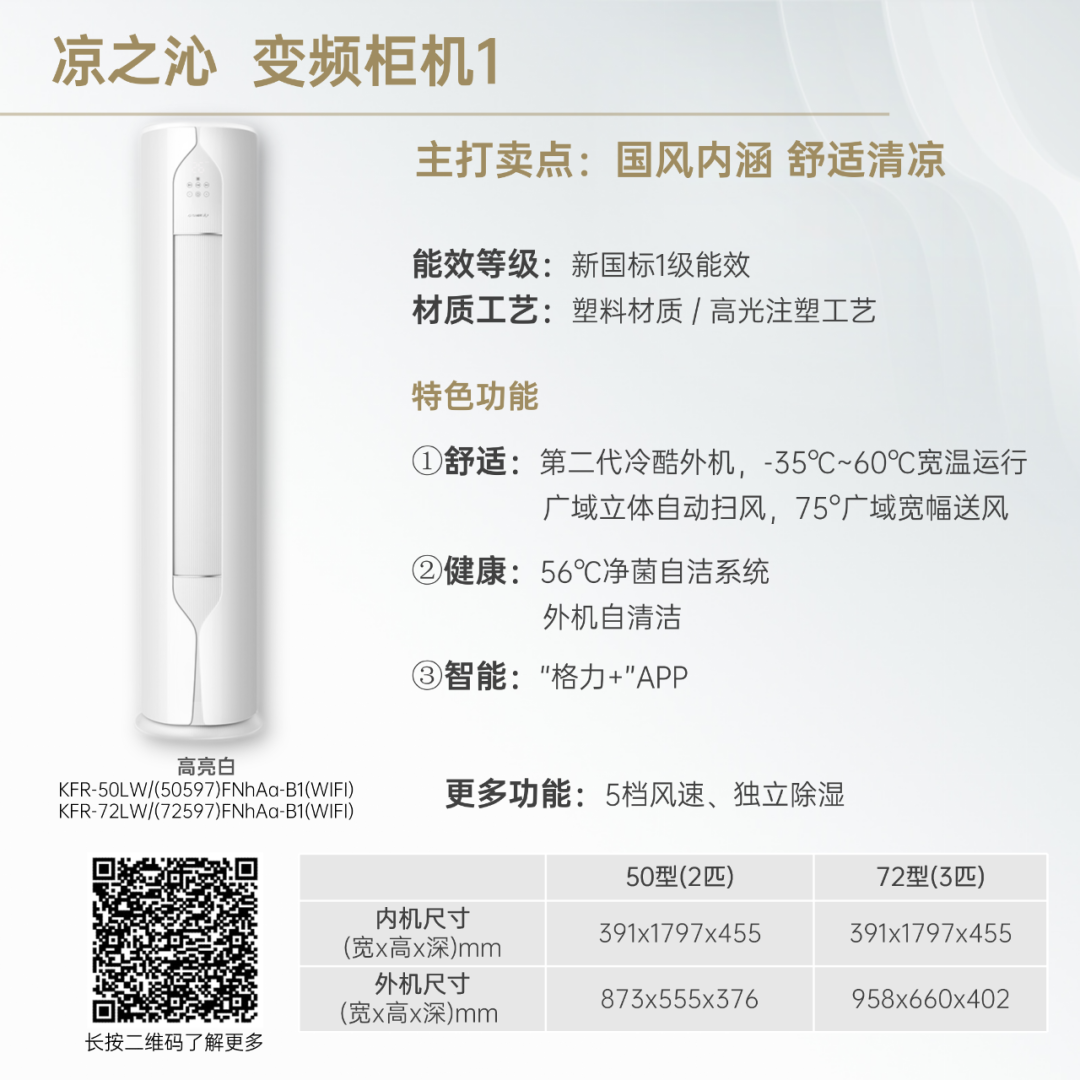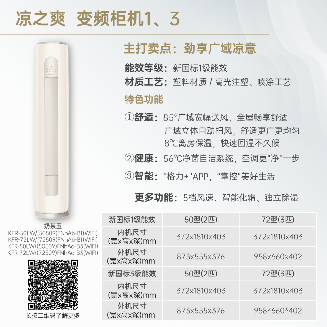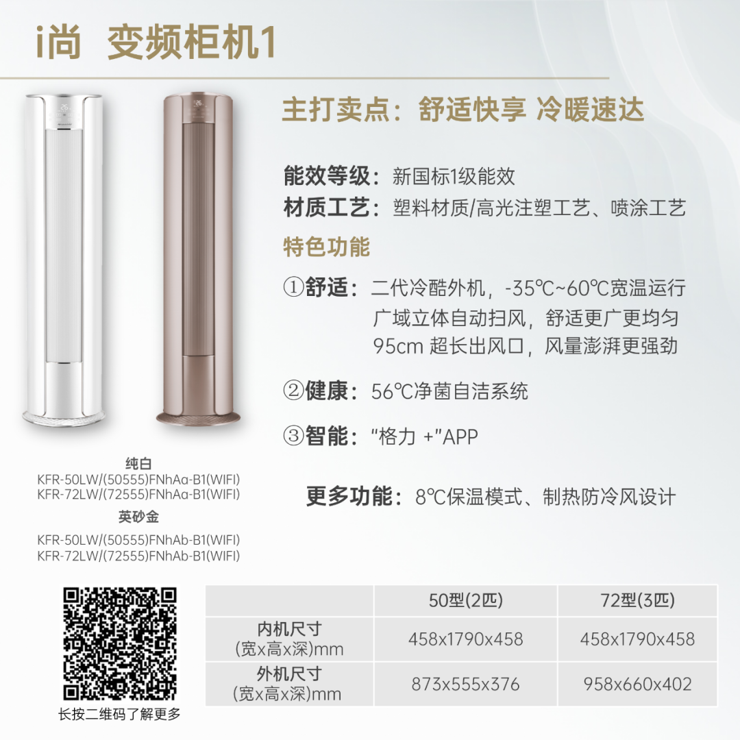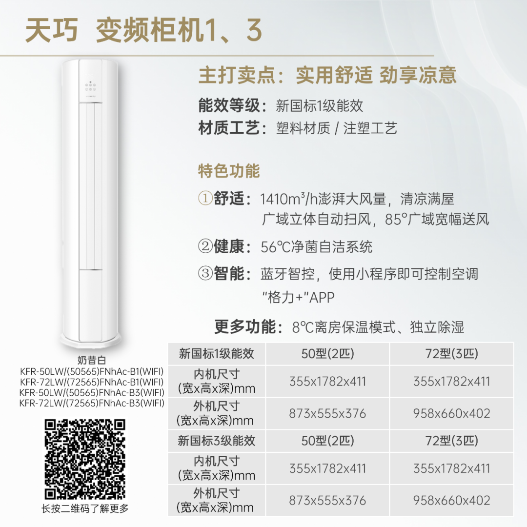 小身材,大冷量。大匹数设计,省空间更舒适!