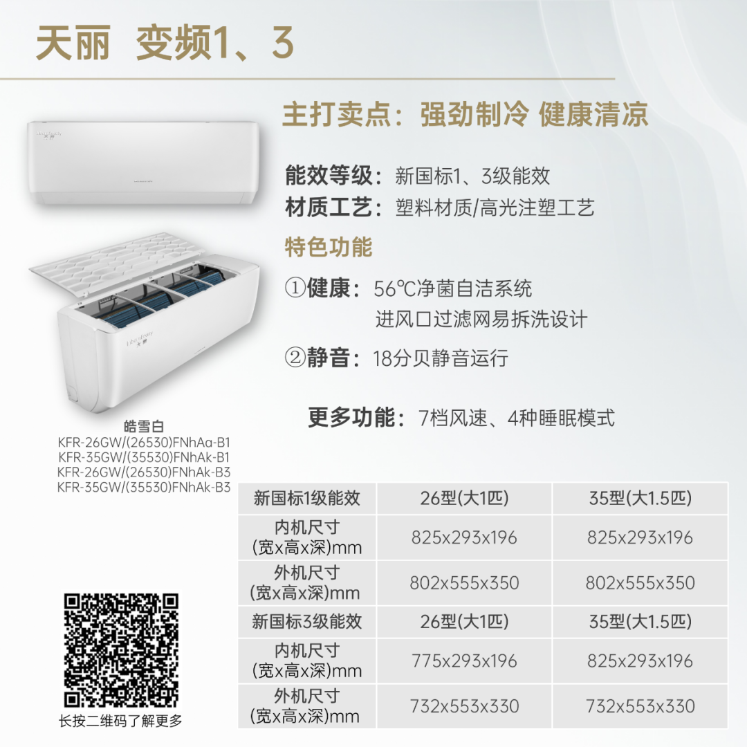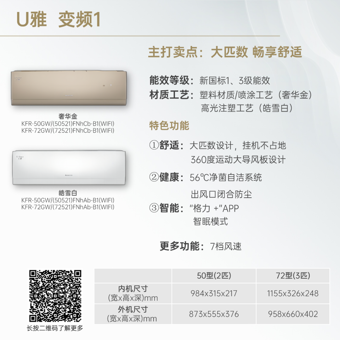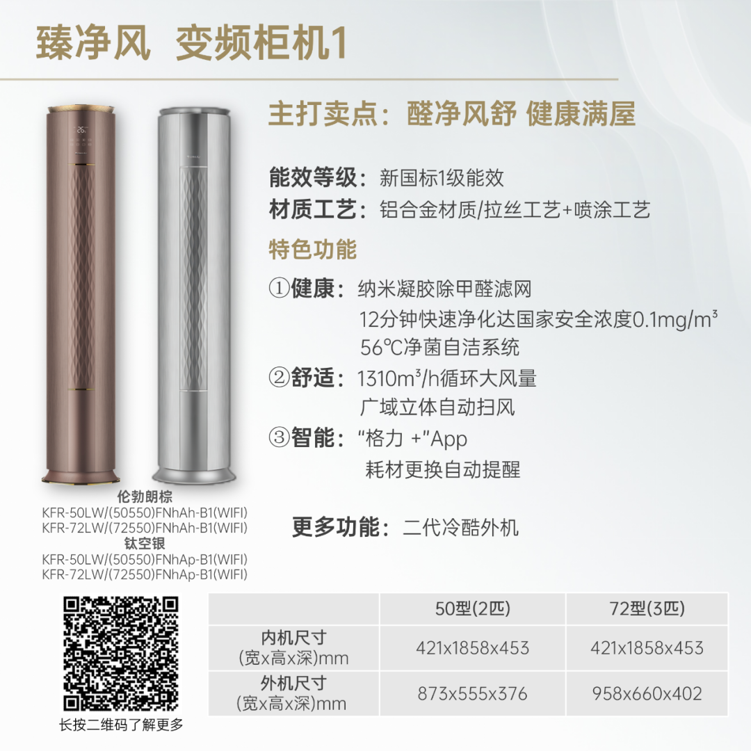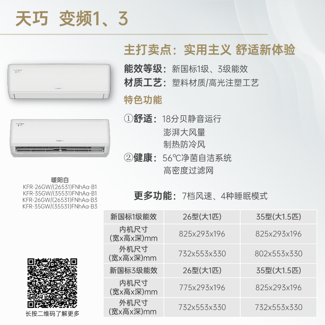 小身材,大冷量。大匹数设计,省空间更舒适!