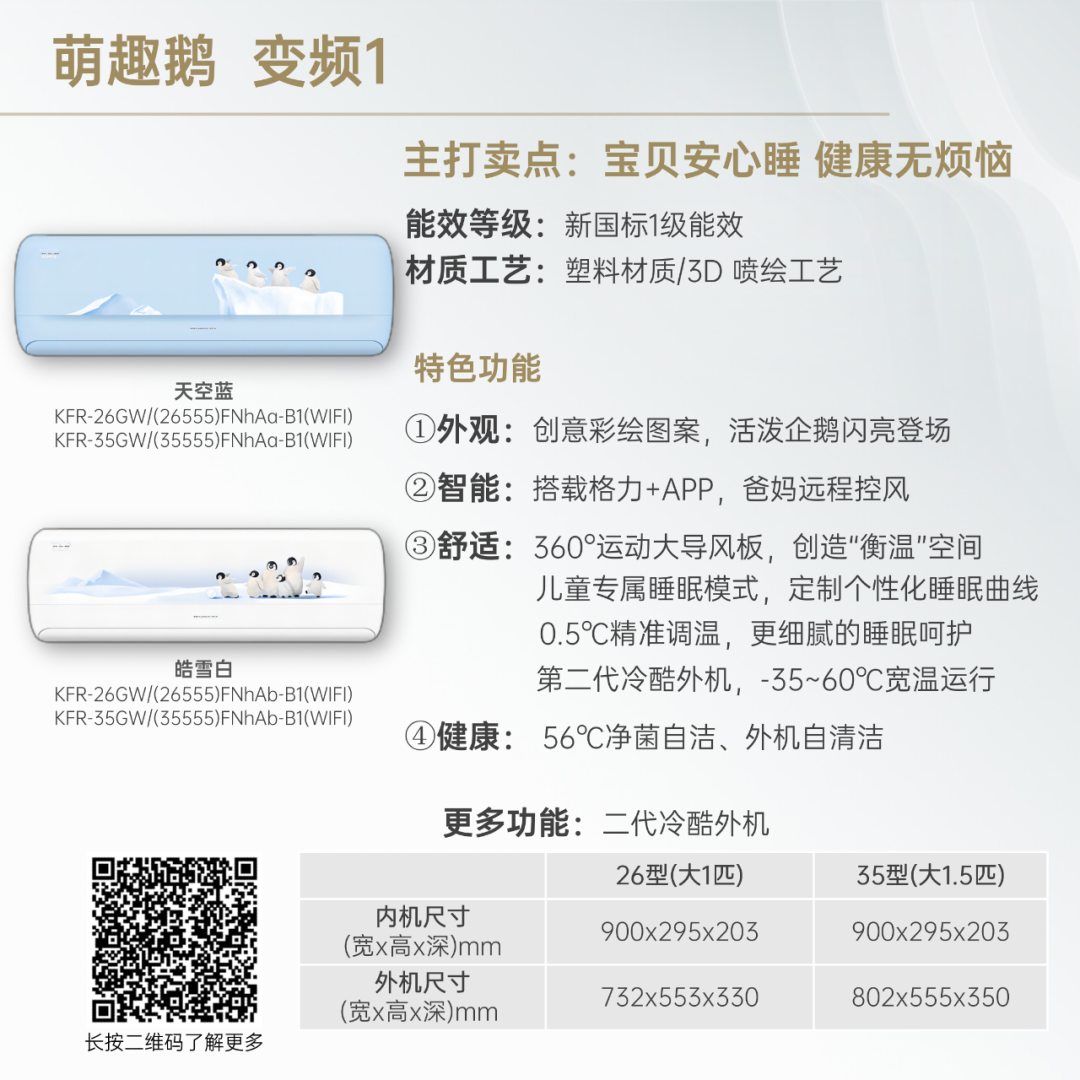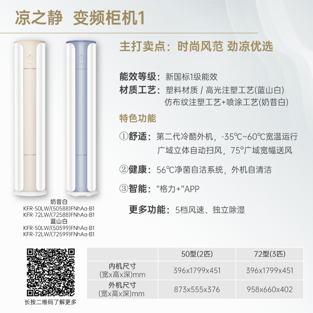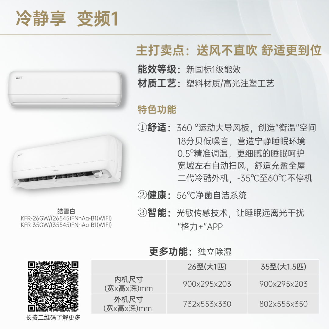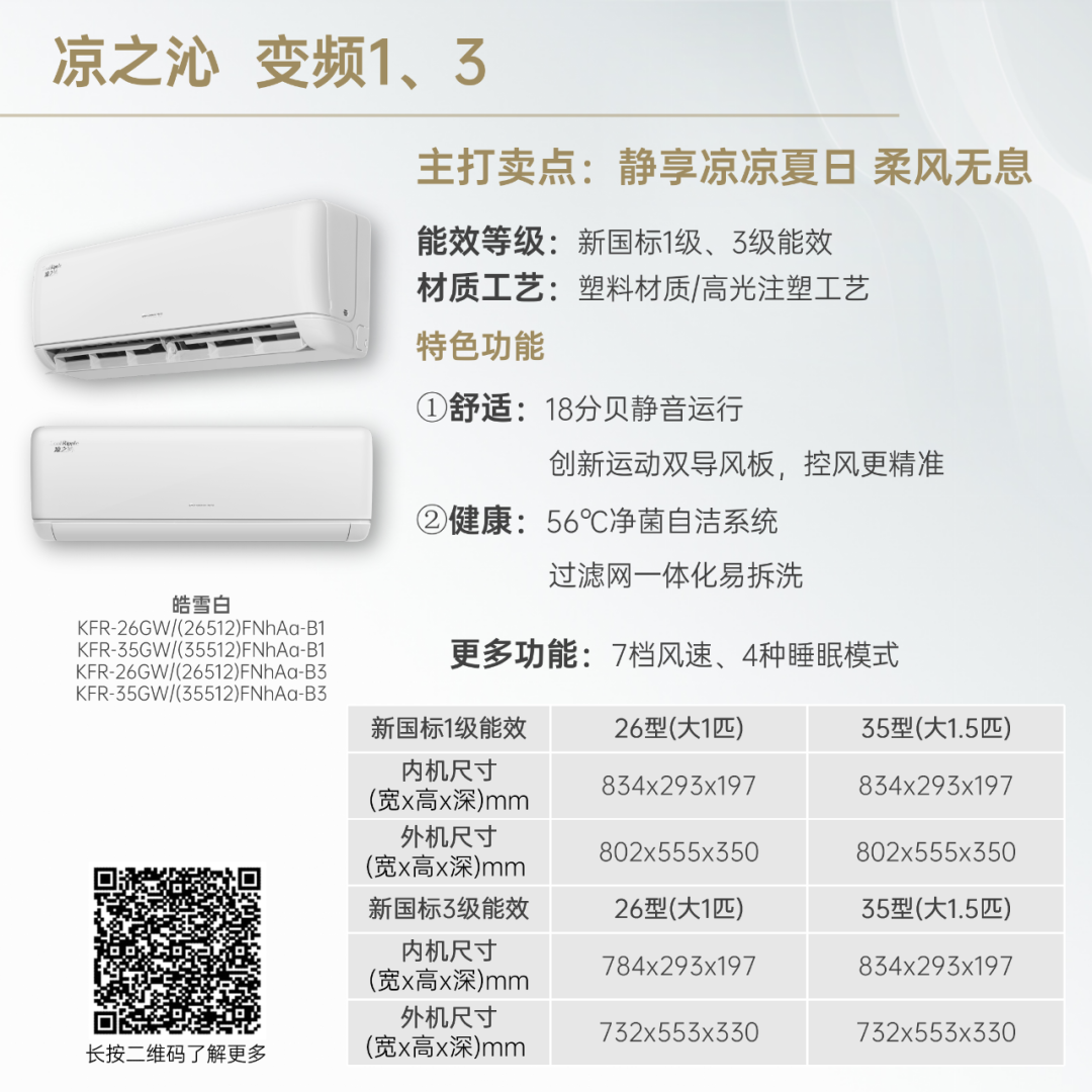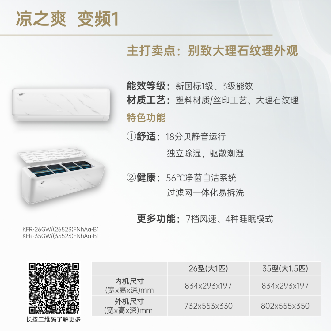 小身材,大冷量。大匹数设计,省空间更舒适!