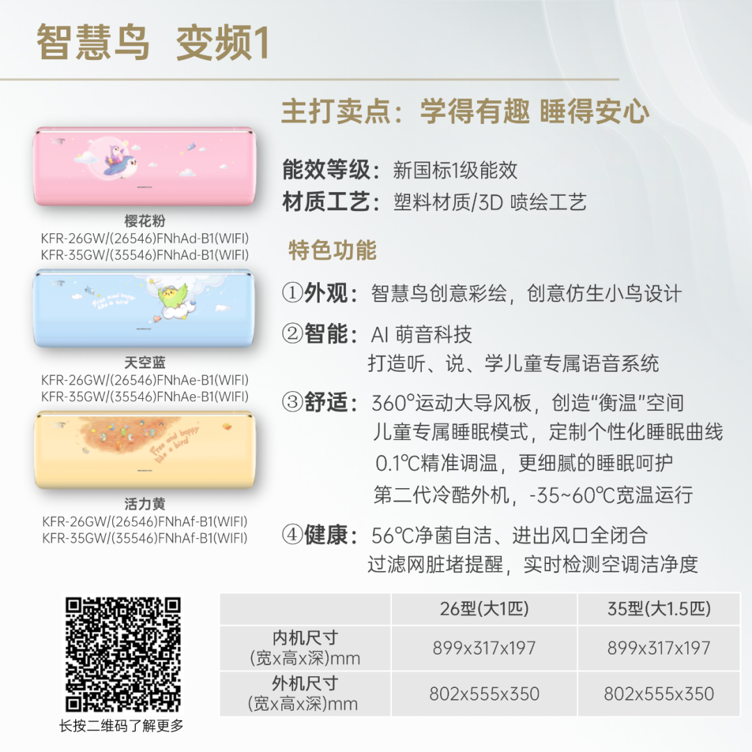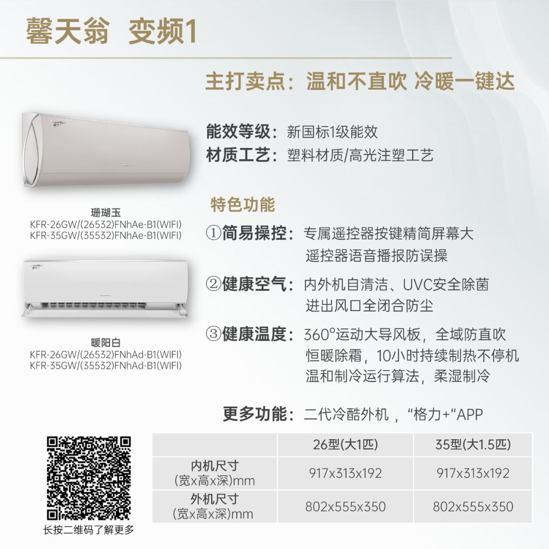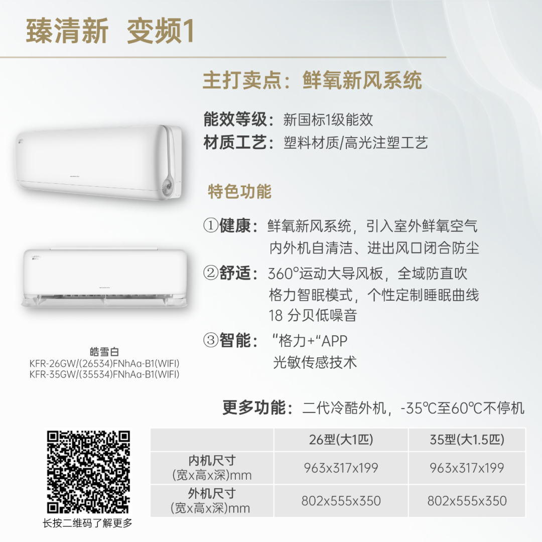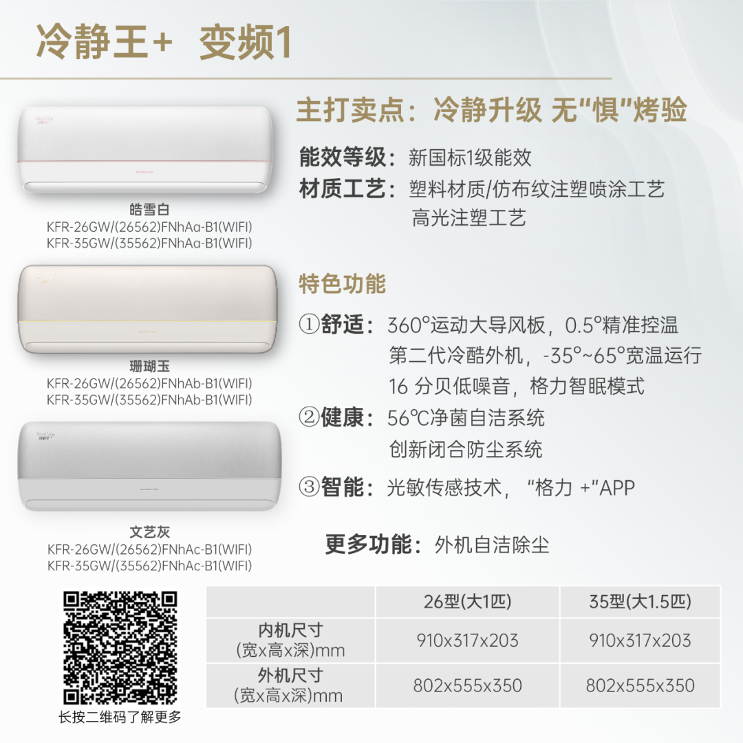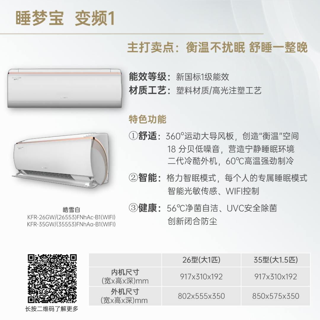 小身材,大冷量。大匹数设计,省空间更舒适!