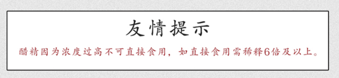 另外这种醋的浓度很高,上面这款醋标注酸度有 30g/100ml,所以在产品详情中商家提示需要稀释。