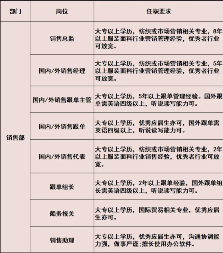 8/19 宁波侨泰兴纺织有限公司,招聘:业务经理、资深业务员