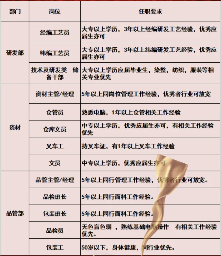 8. 验布QC 2名,18-45岁,生熟手不限,会基本电脑打字