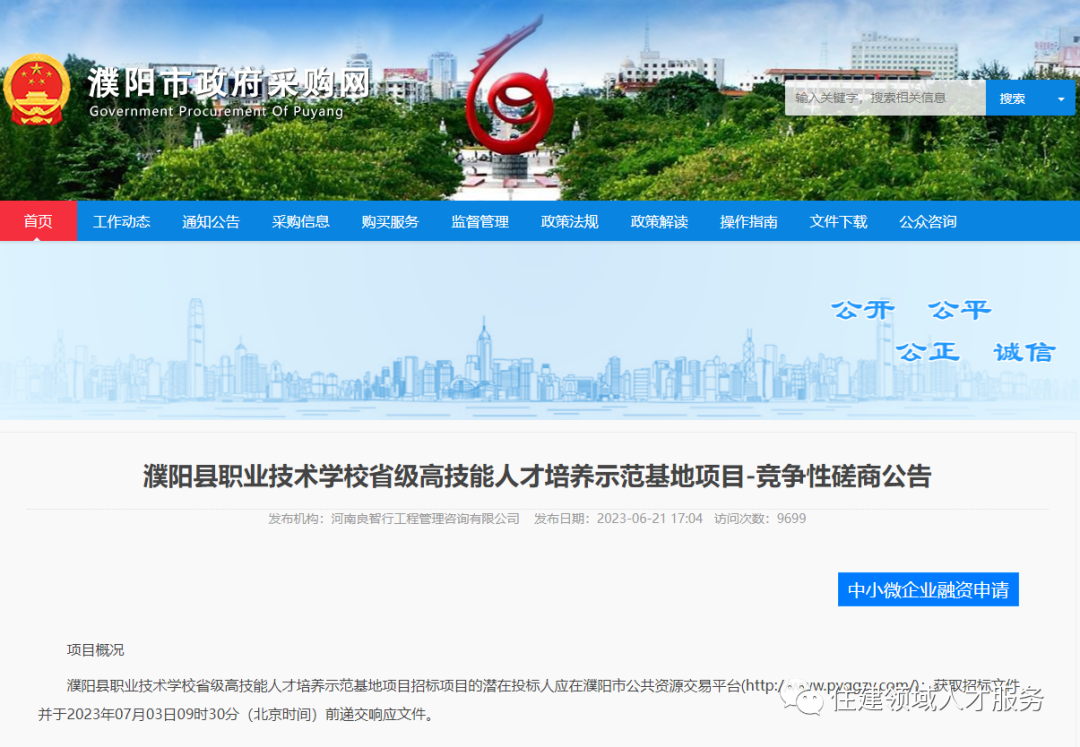 濮阳市政府采购网发布濮阳县职业技术学校省级高技能人才培养示范基地项目-竞争性磋商公告,公告技术评分部分写明:项目经理取得“一级智能建造师”证书得5 分,并提供该人员为公司员工的社保证明;2.项目经理取得“二级智能建造师”证书得3 分,并提供该人员为公司员工的社保证明;3.项目经理取得“三级智能建造师”证书得1 分,并提供该人员为公司员工的社保