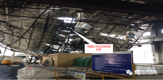 事故发生后,各相关领导第一时间赶赴现场,查看事故情况,并结合现场情况召开紧急会议,并对XX水泥1#机组后续处理恢复工作提出了相关要求:1、关于事故防范。机电保全部要把现场的具体情况发布通报,要求各区域子公司吸取此次事故教训,高度重视余热发电安全运行管理,更要关注运行过程中具体参数的变化,及早发现问题,解决问题。2、关于现场安全。现场安全工作要布置落实到人,抢修恢复方案要充分考虑安全因素,过程监护要受控,防止发生次生灾害,造成安全事故。3、关于现场组织。要立即成立生产恢复小组,由主要负责人任组长,负责机电设备、土建恢复工作,全力以赴恢复机组运行,并做好机组恢复过程中的生产组织工作,确保其他主机设备安全稳定运行。4、关于抢修工作分工。机电保全部、工程部要牵头落实抢修单位,指导XX水泥尽快恢复机组运行;调度中心要全程跟踪抢修过程安全工作布置落实情况,指导XX水泥抓好抢修过程安全管理。5、关于保险理赔。保险理赔工作要快速跟进,保险公司已到现场了解事故情况,并拍照留存,XX水泥公司需持续跟进,做好与保险公司的信息沟通,确保事故理赔及时、全面。1、各单位立即组织余热发电隐患排查,重点检查油管道的漏油情况,高温管道保温情况,汽轮机、高调门等漏油情况,电缆老化及接头情况。2、要求对各漏油点立即落实治理,对破损的保温立即组织恢复;对油品泄露污染的保温层拆除更换。3、对电缆桥架增加盖板防护,穿过汽轮机岛的动力电缆改用穿管布置;对润滑油管道的密封垫和蒸汽管道的密封垫利用检修每年定期更换。4、汽轮机大修时对润滑油管道进行重新布管,所有接头(法兰或焊缝)部位必须避开高温蒸汽管道,建议采用承插式刚性接头,避免采用法兰连接。当前的法兰接头部位要求加强点检,在高温部位出现漏油必须停机更换密封垫。5、检修电源箱全部移装到侧墙面,不得在油管或蒸汽管道附近安装电源箱,电源箱电缆采用穿管布置。6、机头轴承箱的观察窗要求采用螺纹锁固胶对螺栓与壳体之间进行密封,玻璃面采用硅橡胶密封垫,防止渗漏油。2014年1月19日20:55分,XX水泥六线煤磨操作员发现煤磨系统设备全部跳停,同时现场巡检人员发现煤磨热风管道(窑头平台纤维膨胀节至煤磨房纤维膨胀节段长度约22米)垮落,事故发生后,XX水泥立即上报集团、股份公司领导,以及股份公司相关部室和XX建材设计院。股份公司总经理助理李XX当晚第一时间赶到现场,察看事故现场并对设备恢复和原因调查等相关工作进行了部署。1月20日,机电保全部、装备成套部、工程技术部、XX水泥、XX建材设计院等相关人员共同在现场研讨拟定了恢复方案,预计1月25日完成抢修工作。