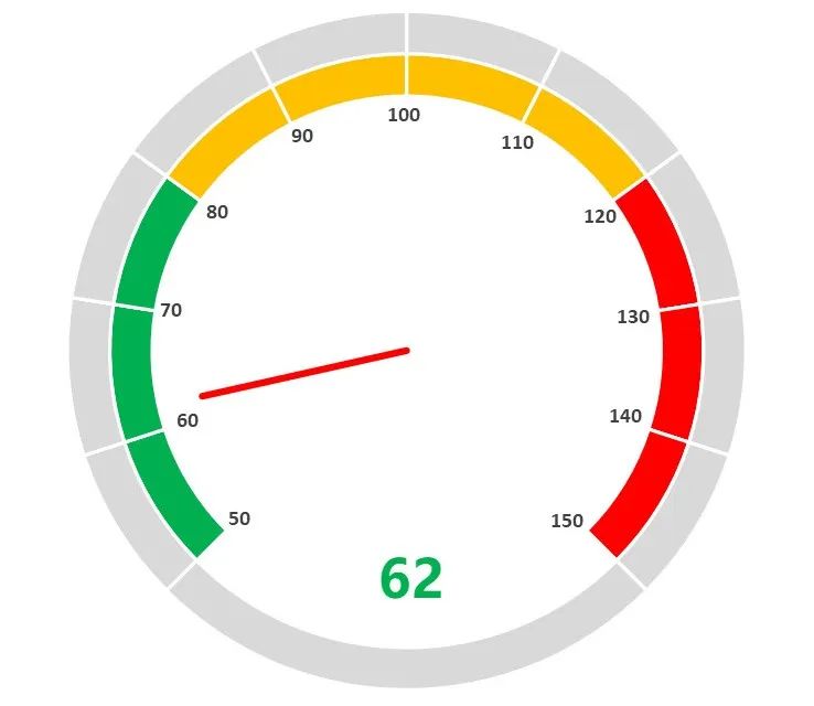 今天跟大家分享下如何在excel中制作仪表图,仪表图相信大家都非常的熟悉,它是仿照汽车速度表来进行数据展示的一种图形,常用来反映完成率以及一些指标性的数据,可以说是最常见的商务报表之一,效果如下图