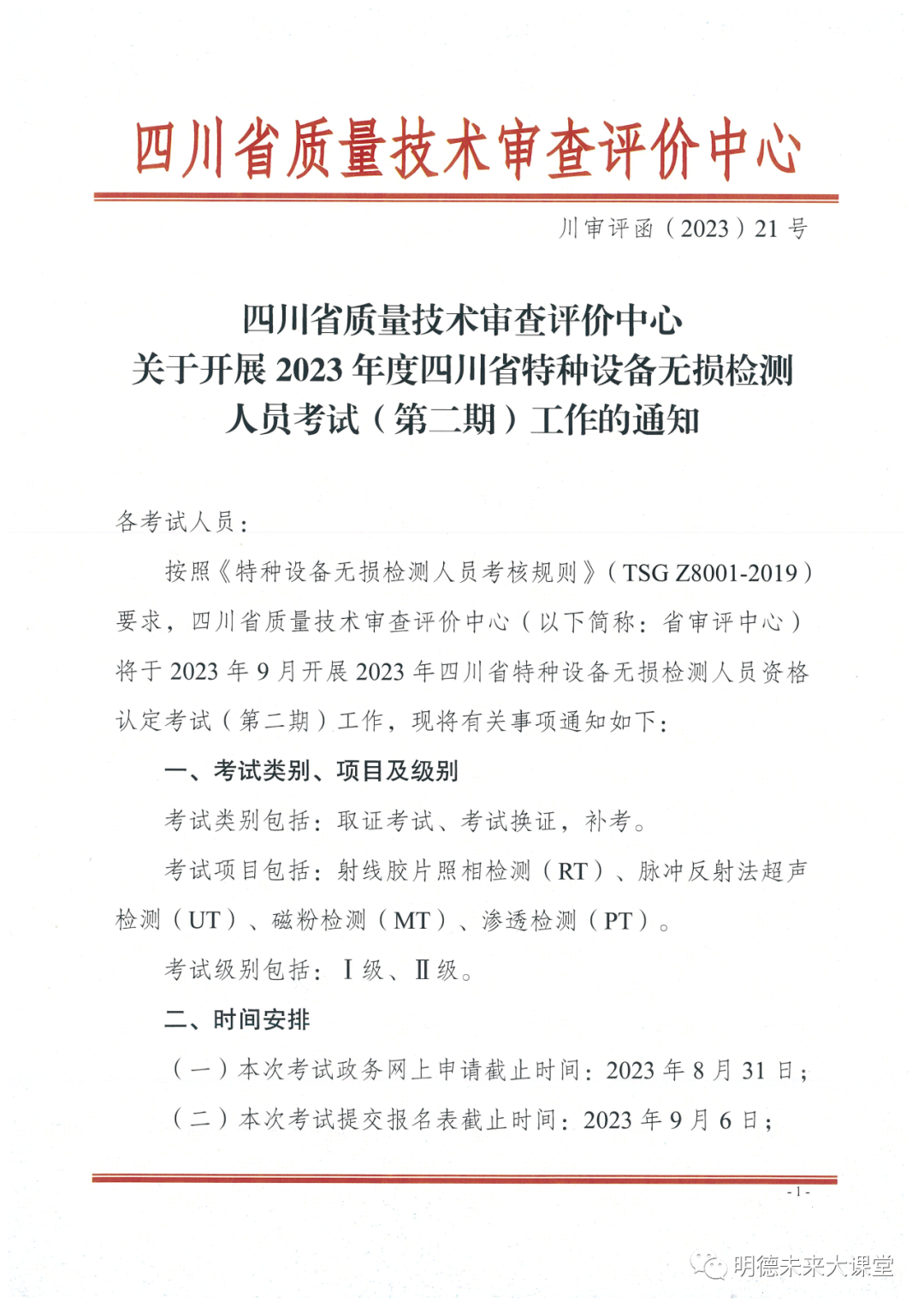 关于开展2023年度四川省特种设备无损检测人员考试(第二期)工作的通知