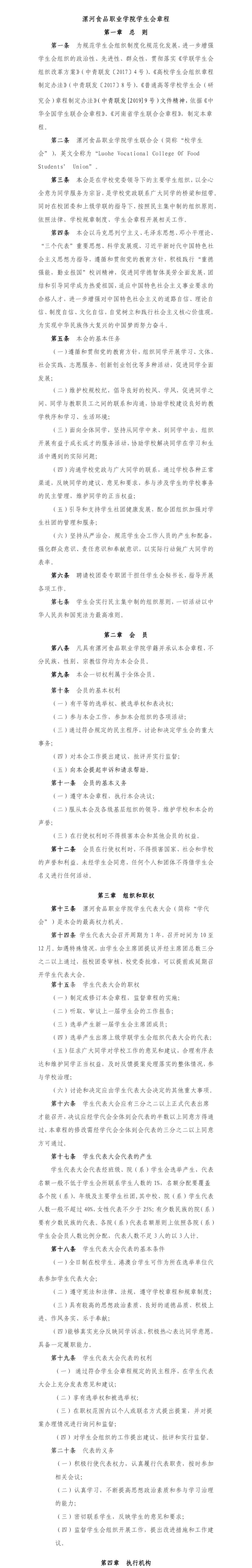 《漯河食品职业学院学校学生会章程》