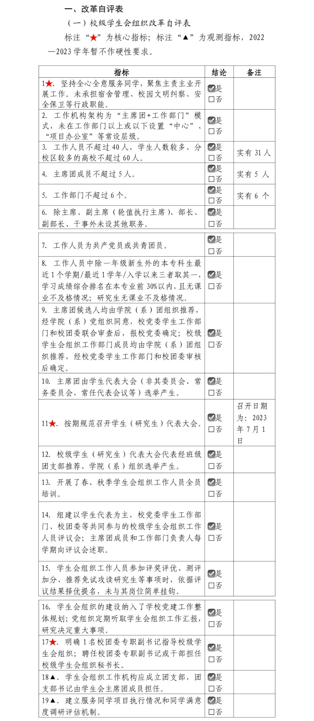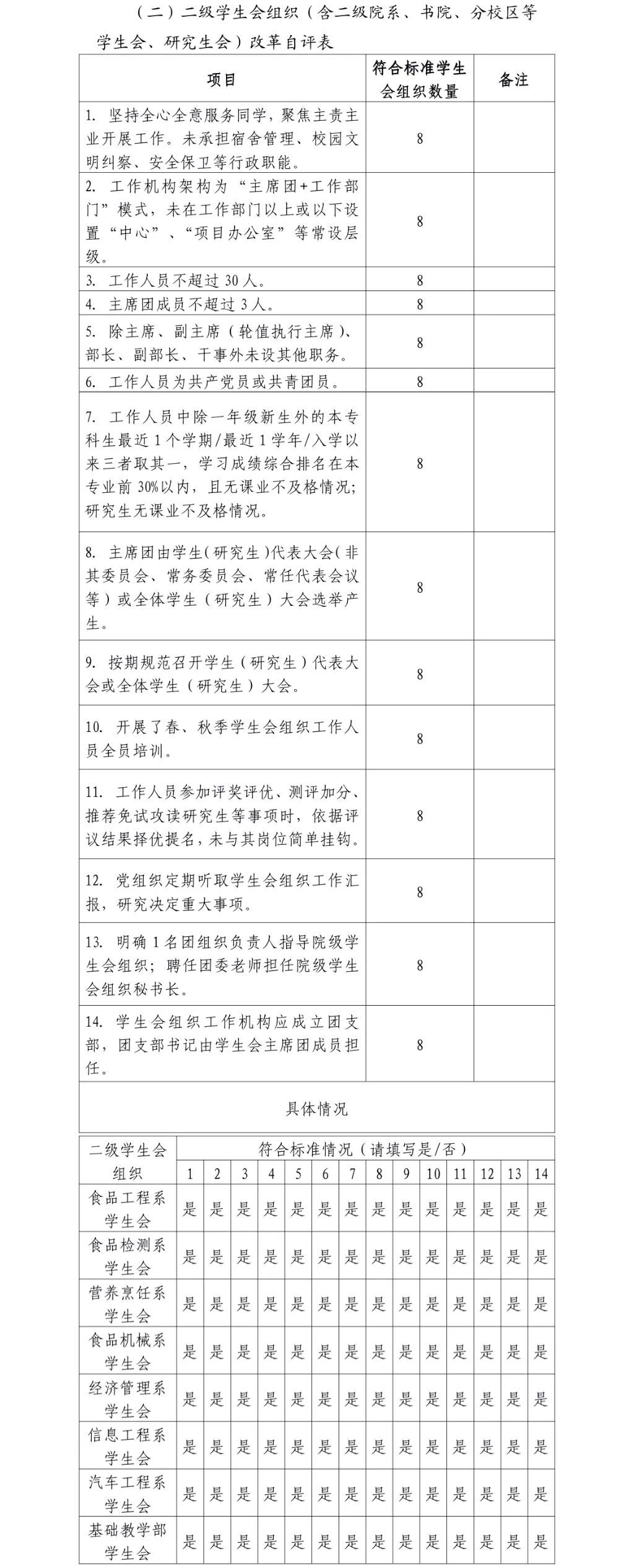 为落实共青团中央、教育部、全国学联联合下发的《关于推动高校学生会(研究生会)深化改革的若干意见》,并结合《关于巩固高校学生会(研究生会)改革成果的若干措施》文件要求,接受广大师生监督,现将我校2022—2023学年学生会改革情况公开如下。