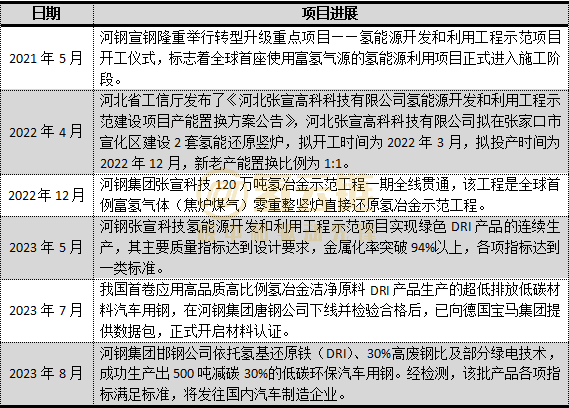图表1 河钢集团近年部分氢冶金重大项目进展