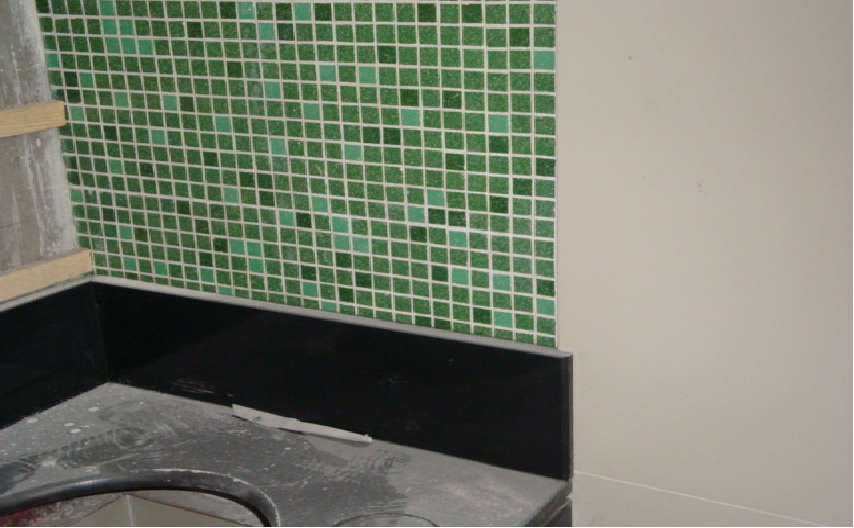浴缸部位成品保护:待浴缸台面石材浴缸孔切割完成后,钉接18mm细木工板盖板,对石材面作遮盖保护。