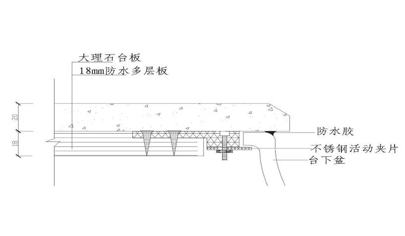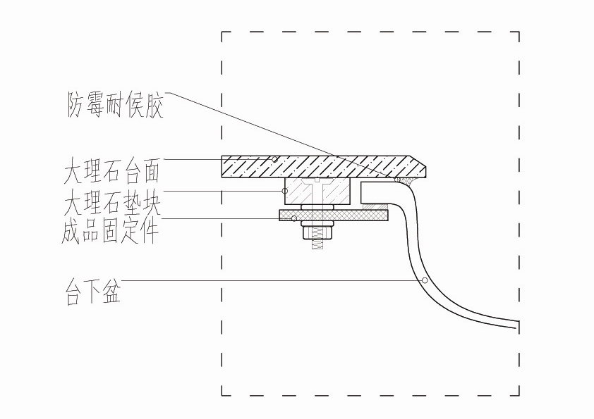 台下盆固定方法:用自攻螺丝固定于台板基层板的背面,采用专用的固定构件安装,以便于台盆调换检修。
