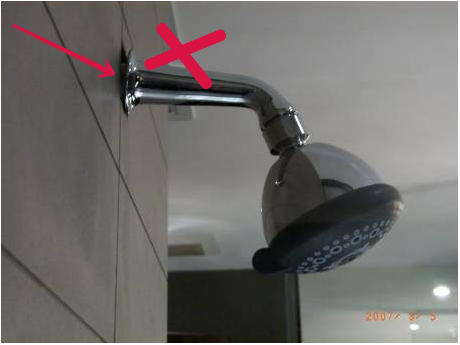 ▲所有墙面出水口要和墙面完成面平,不能有出墙或入墙太多的现象,保证龙头安装的平整。