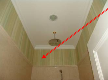 ▲层高太高,给人狭窄的感觉,实木门不防潮,应考虑换其他门,墙纸不防潮,建议换石材