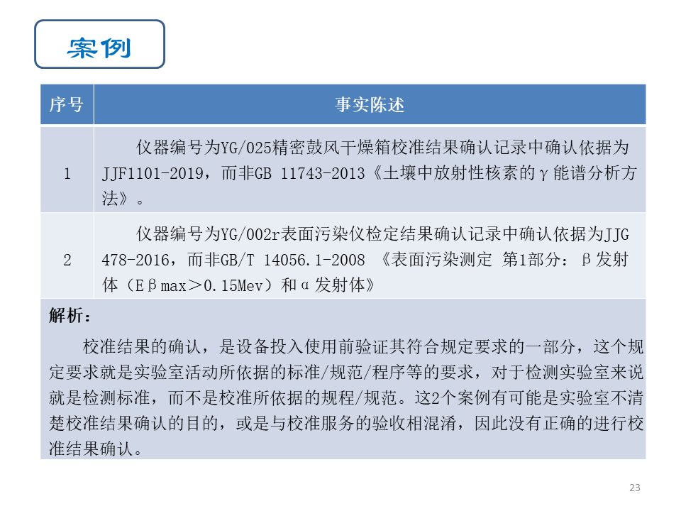 部分实验室存在的问题是没有根据自身实验室活动的需要提出校准需求,而是由校准机构根据经验或检定规程的内容确定。校准完成后也没有根据预期使用要求对校准结果进行确认,因此现场评审时发生的这类不符合较多。这类问题发生往往与实验室校准方案(6.4.7要求)的制定存在缺陷相关,因此实验室整改时也要注意查找这方面的影响因素。