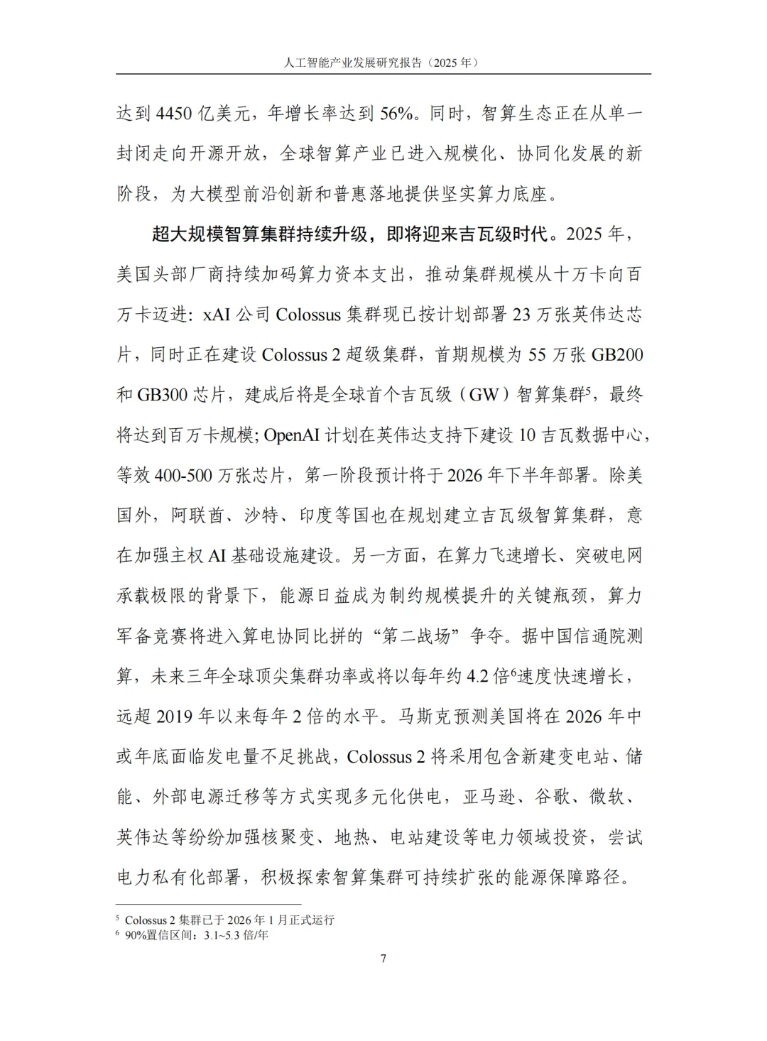 然而,能源成为新瓶颈。未来三年全球顶尖集群功率预计以每年4.2倍速度增长,远超2019年以来每年2倍的水平。马斯克预测美国将在2026年中面临发电量不足挑战。这推动算力竞赛进入"算电协同"的第二战场——Colossus 2采用新建变电站、储能、外部电源迁移等多元化供电,亚马逊、谷歌、微软等纷纷加强核聚变、地热、电站建设投资,探索电力私有化部署。
