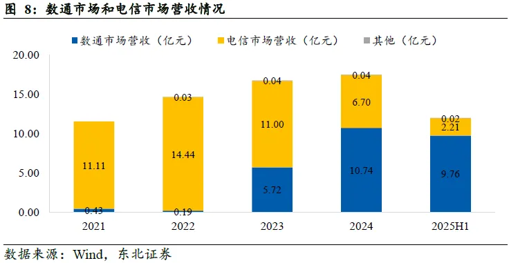 综上所述,公司电信市场业务未来预计稳健增长,预计2025-2027年增速为0.35%/14.88%/12.44%,预计毛利率为8.93%/9.39%/9.87%。