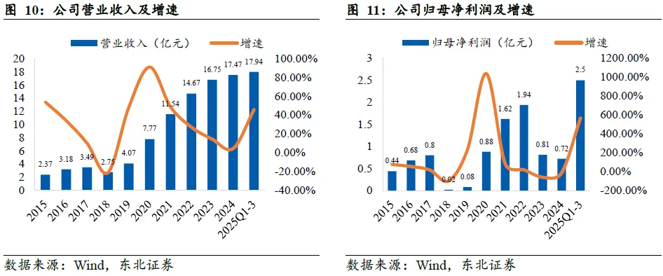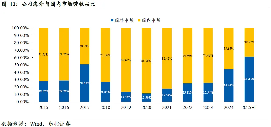 公司营收快速增长,数据通信、消费及工业互连业务带动整体毛利率提升。25Q1-3公司实现营业收入17.94亿元,YoY+45.41%,超越2024年全年营收规模;实现归母净利润2.50亿元,YoY+566.59%。从营收构成来看,2025年上半年海外市场营收占比61.43%,国内市场占比38.57%。2025年上半年,整体毛利率为40.19%,数通、消费及工业互连市场毛利率为45.65%,电信市场毛利率为15.94%,收购长芯盛之后数通业务毛利率提升显著,带动整体毛利率迅速增长。费用控制良好,期间费用率呈下降趋势。25Q1-3,销售费用率/管理费用率/研发费用率/财务费用率分别为1.95%/5.42%/4.79%/0.35%。