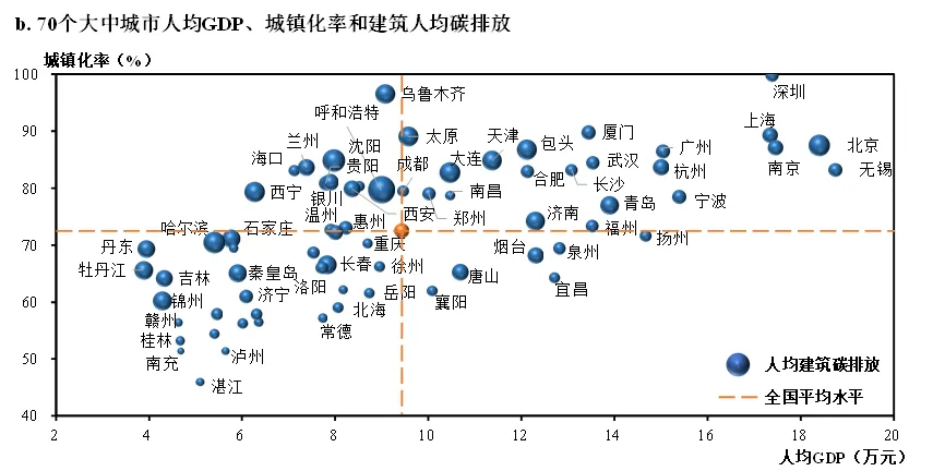 不同省份、城市之间的建筑运行碳排放总量差异显著。