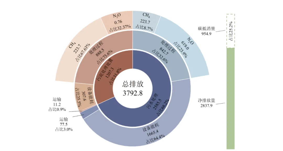 2021年全国城镇污水处理全过程碳排放达3792.8万tCO2-eq。