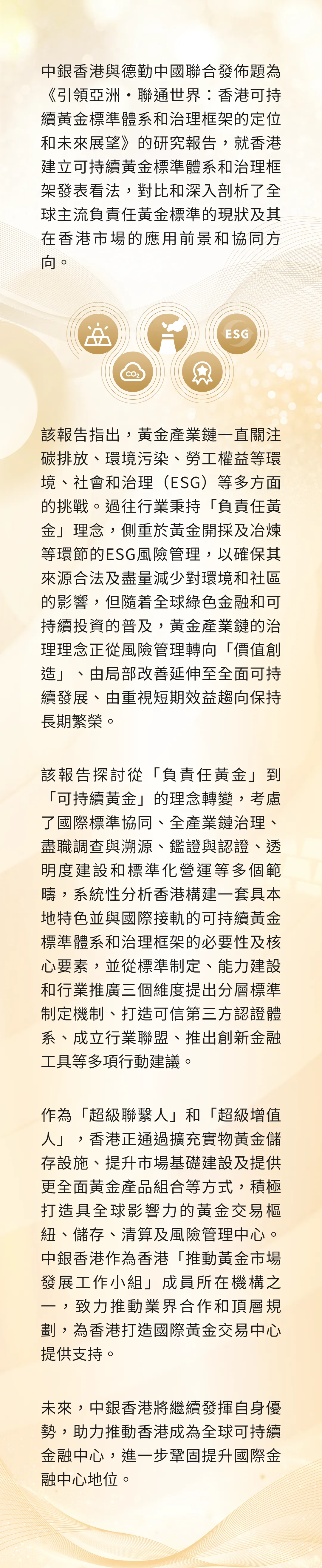 中銀香港與德勤中國聯合發佈研究報告 助力香港推動全球黃金治理從「負責任黃金」轉型至「可持續黃金」