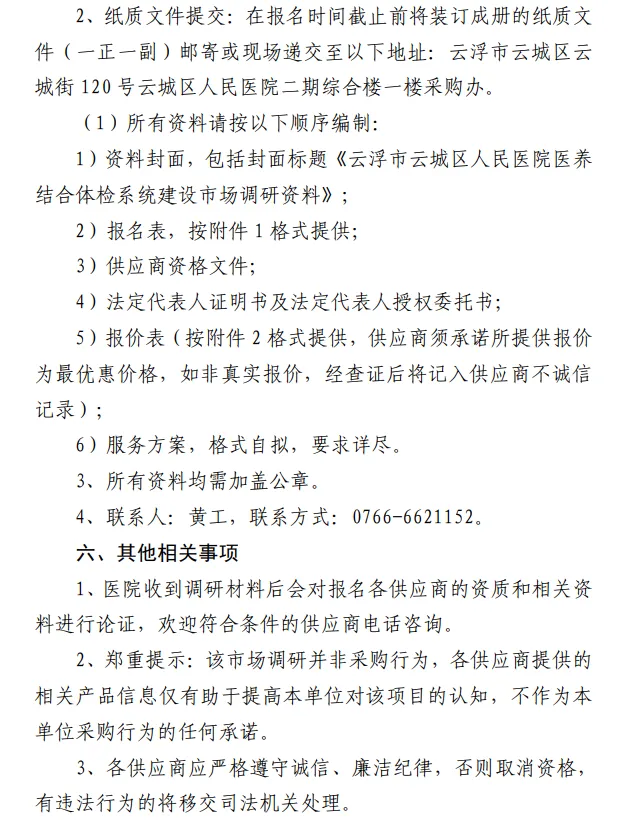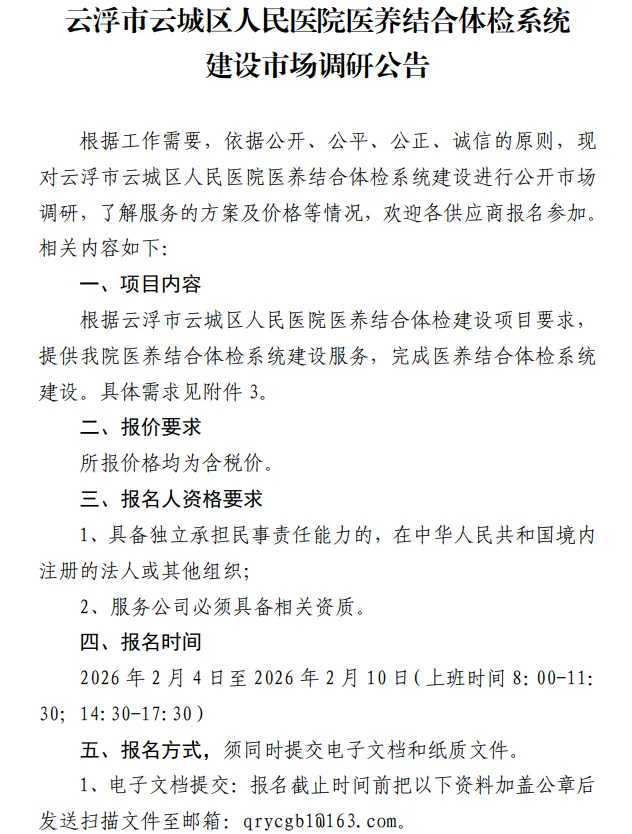 云浮市云城区人民医院医养结合体检系统建设市场调研公告