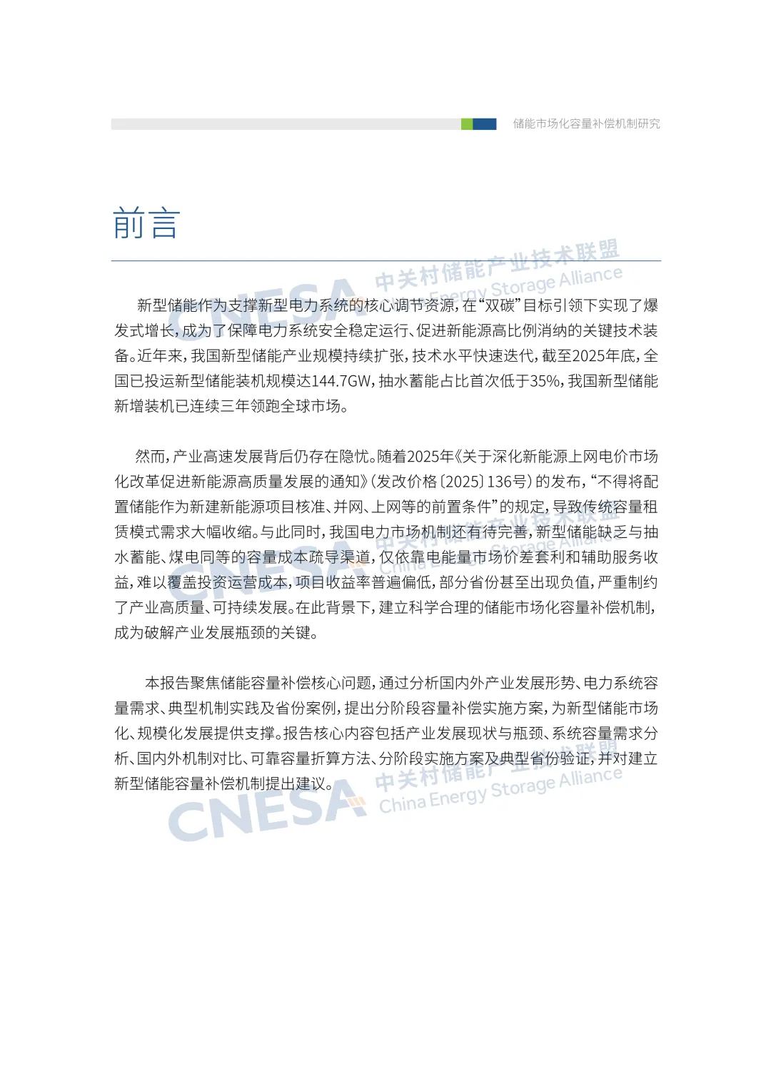《储能市场化容量补偿机制研究》课题研究工作由中关村储能产业技术联盟牵头,联合华北电力大学、国网能源研究院财会与审计研究所、国网能源研究院能源战略与规划研究所、中国科学院工程热物理研究所共同完成,为国家政策制定提供重要参考。