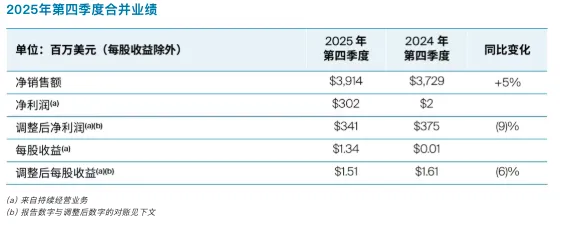 第四季度作为全年收官阶段,PPG的表现尤为抢眼。当季净销售额39.14亿美元,同比增长5%,有机销售额同比增长3%,创下2025年单季度最高增速。这一增长得益于销售量和销售价格的双重推动,且所有地区均实现销售量增长。每股摊薄收益1.34美元,调整后每股收益1.51美元,同时完成约1亿美元股票回购,为全年业绩画上圆满句号。