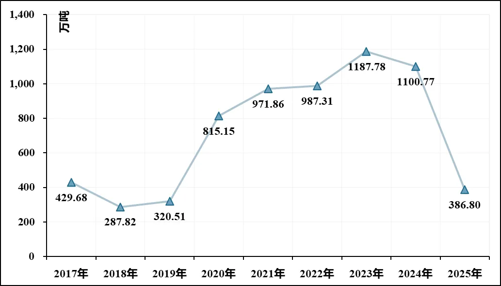 图表 3 2017年至2025年我国小麦进口情况
