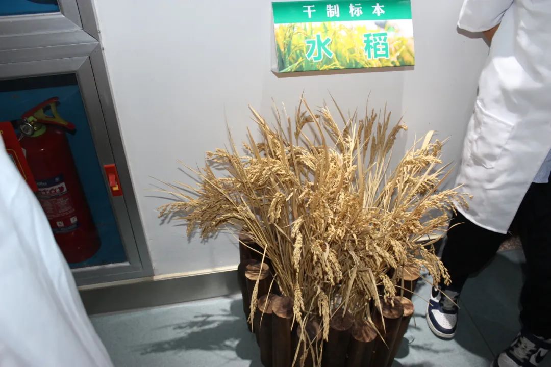 参观完一楼的展区,同学们有次序地步梯来到楼上,见证五谷杂粮最真实、最朴素的面貌。金黄饱满的麦穗风干后,树立在楼道的一边,麦芒尖而有力,虽然早已熟透,风骨依旧,麦粒结实浅咖色,都是吸收了日月精华的“精壮小伙”呢。啊,终于见到了“麦子”本尊,同学们情不自禁呼喊起来。对于后工业化时代的孩子们,麦子已经不常见。与麦子遥相呼应的是稻穗一角,只有丰收的金黄才能配上稻穗的伟大功勋,它对人类的贡献无人能够替代。也要感谢袁荣平爷爷,对于水稻的研究深入骨髓,竭尽生平,终能养得起地球上这80亿生灵。