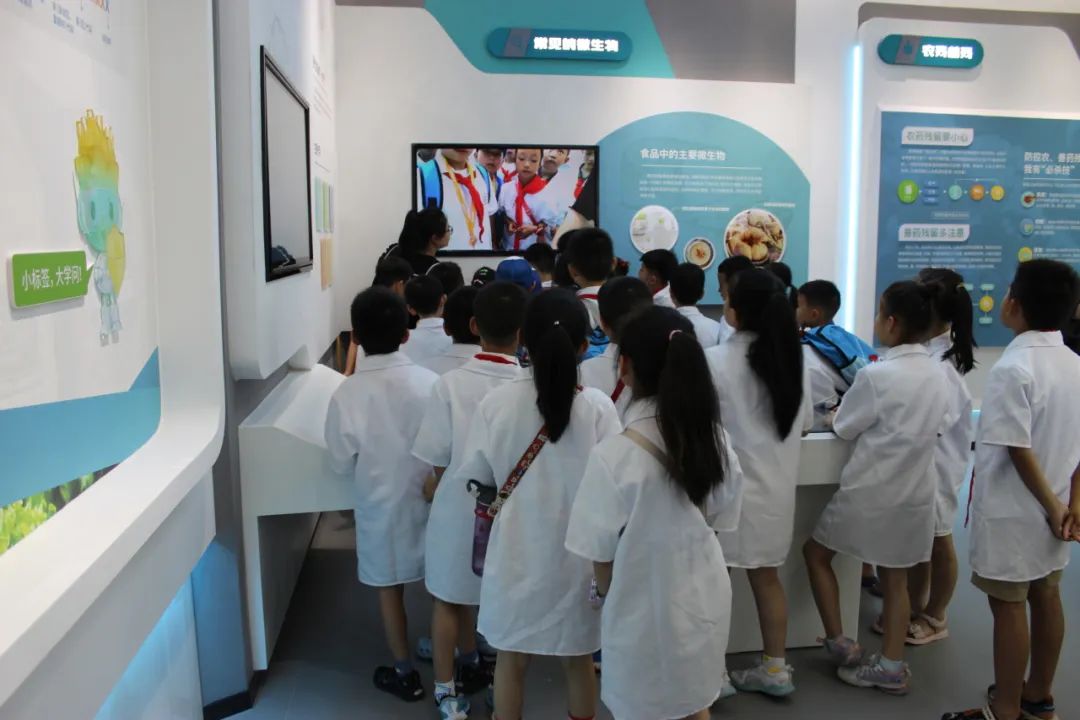 首先,同学来到一楼参观市食药安全科普馆。馆内的老师热情地给大家介绍了“食药安全法制引领”、“食品安全”、“药品安全”三大区块,以数字化交互的方式,了解了食品药品安全重要性。食用检测不合格或者过期食品以及滥用食品添加剂等产品会导致食物中毒等不良后果。所以今后小朋友们去超市或者商店购物都要学会看食物配料表,生产日期,质保期限等有效食品质量信息,成为一名对自己对家人食品安全负责的一道有力防线。