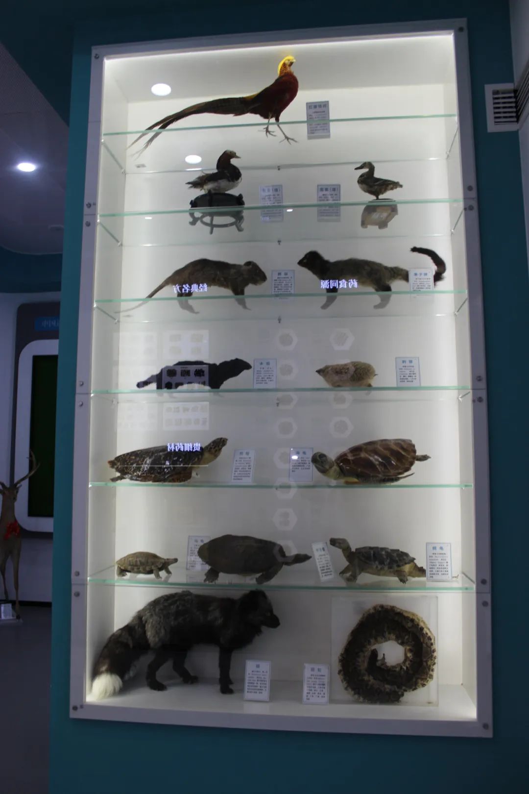 科普馆的老师还详细给大家介绍药品安全的法律保障,药品不同于食品的服用方法,以及部分中药的标本展示,中药道地药材的分布等等,知识面非常广阔而有趣,其中同学们最感兴趣的是一具完整豹骨。以前,同学们只知道金钱豹作为猫科动物身体灵活,奔跑快速,视力敏锐,是高效率的狩猎者,能够以迅雷不及掩耳之势袭击猎物。今天才知道豹骨是中药分类中动物类药品,具有追风定痛,强壮筋骨的作用,对于风湿痹痛,筋骨疼痛具有非常好的疗效呢。
