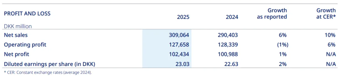 2026年2月3日,诺和诺德(NYSE:NVO)发布2025年财务业绩,公司全年收入3090.64亿丹麦克朗(约合489.24亿美元),同比增长10%(按固定汇率计算,下同)。营业利润1226.58亿丹麦克朗(约202亿美元),同比增长6%。