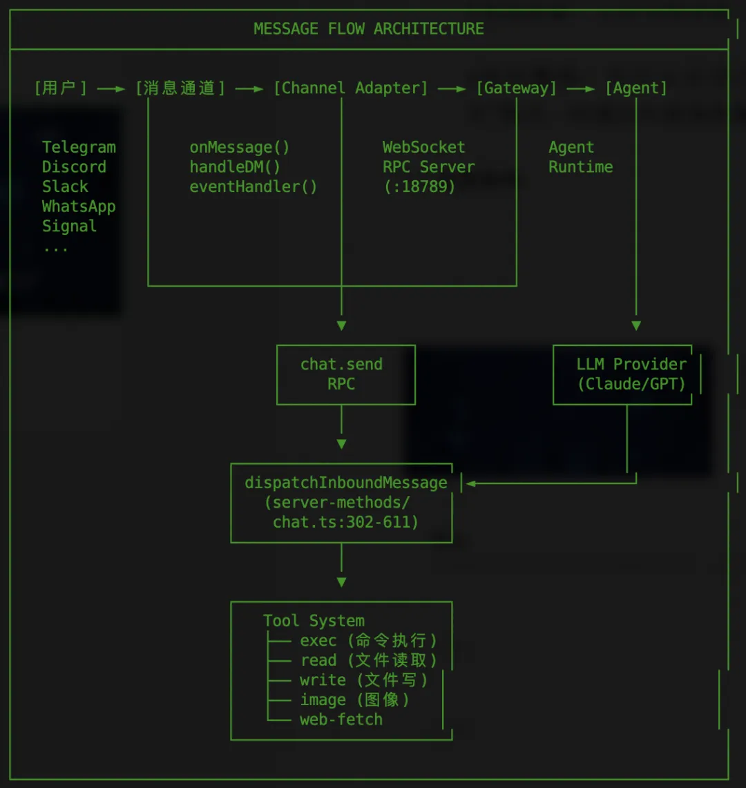 多种访问通道:通过 12+ 消息通道暴露 Agent 能力(Telegram、Discord、Slack、WhatsApp、Signal、iMessage等)