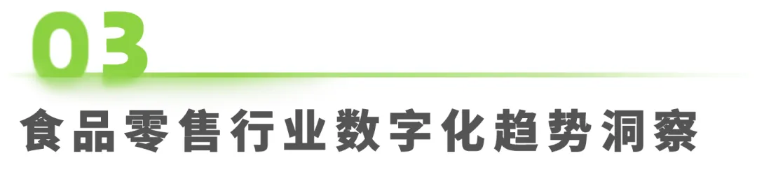 食品零售行业长期以分散的社区门店及夫妻老婆店为主,虽然门店数量庞大,但整体数字化水平偏低。随着新兴业态的兴起推动行业连锁化率的提升,食品零售领域的数字化转型也进入加速阶段。传统零售供应链链路冗长且数据利用率低下,通过数字化手段可以整合供应链、优化采购成本,同时提升管理效率、减少库存浪费。与此同时,消费者习惯的变革,让线上线下融合成为必然趋势,打通各渠道消费者数据,基于OneID的统一身份管理将能够帮助企业精准把握用户需求。围绕供应链管理的效率提升和围绕全渠道运营的体验重构将引领本阶段的食品零售数字化转型。