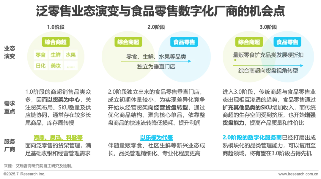 以胖东来、永辉等为代表的商超企业,率先利用货盘差异化策略开启从规模扩张向品质提升的转型。相比1.0阶段服务综合商超的数字化厂商多聚焦货架层面的管理,以乐檬为代表的食品零售领域数字化厂商在品类管理方面更加精细化、专业化,能够帮助客户挖掘品类数据,优化商品结构,满足消费者对商品丰富度和高品质的需求。此类厂商在过往服务中积累的模块化能力将有望帮助其把握商超转型的机遇,向包括综合商超在内的更广泛的客群拓展。