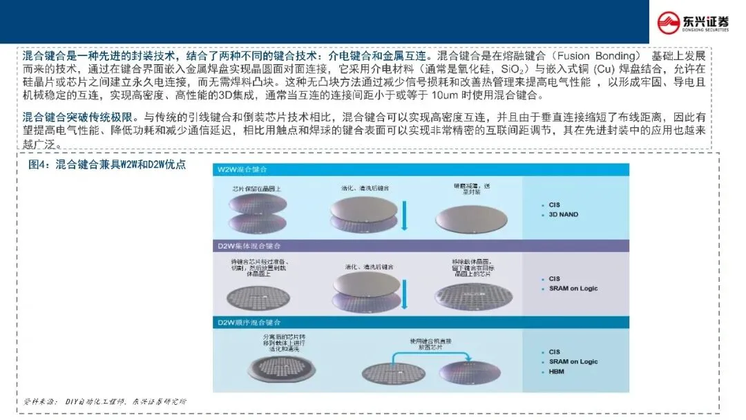 目前,混合键合已在3D NAND、CIS(取代TSV)等领域成熟应用,并正加速向HBM、AI芯片、DDR6+及SoIC等高性能计算场景扩展,成为突破算力与带宽瓶颈、重塑产业链价值的核心使能技术。