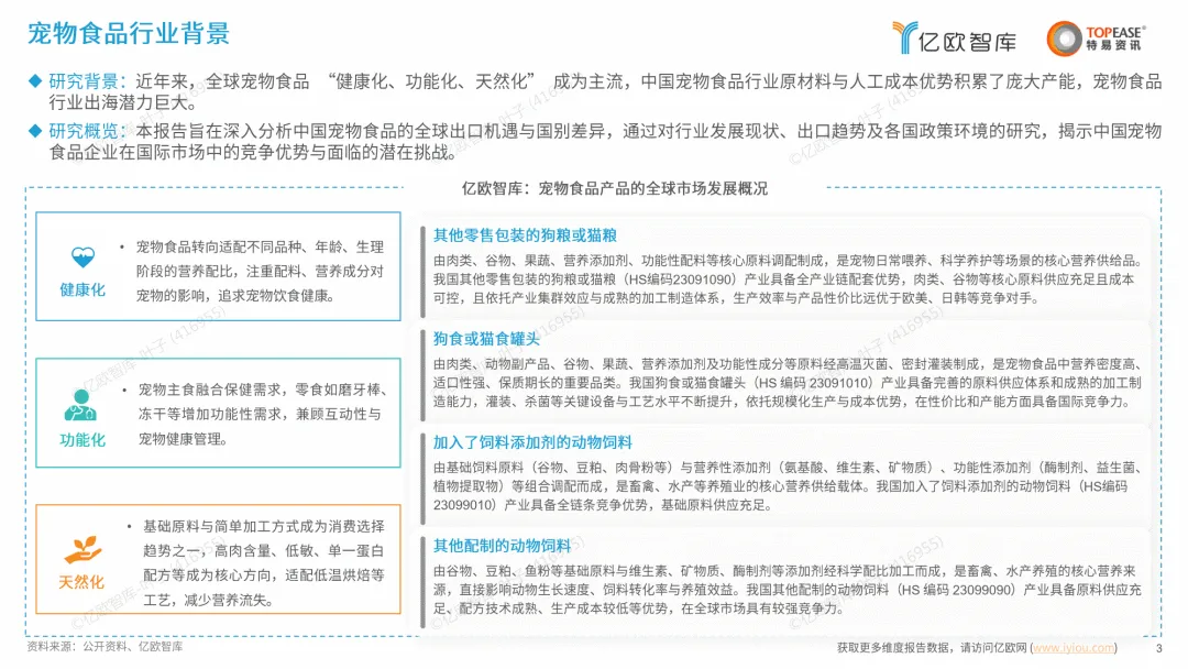 《中国宠物食品行业出海国别机会洞察报告》聚焦全球宠物食品 “健康化、功能化、天然化” 的主流趋势,深入分析了中国宠物食品行业的出海现状、国别机会、发展趋势及挑战。