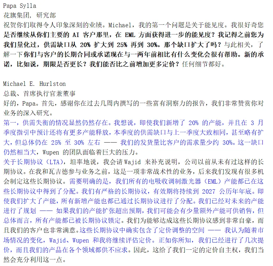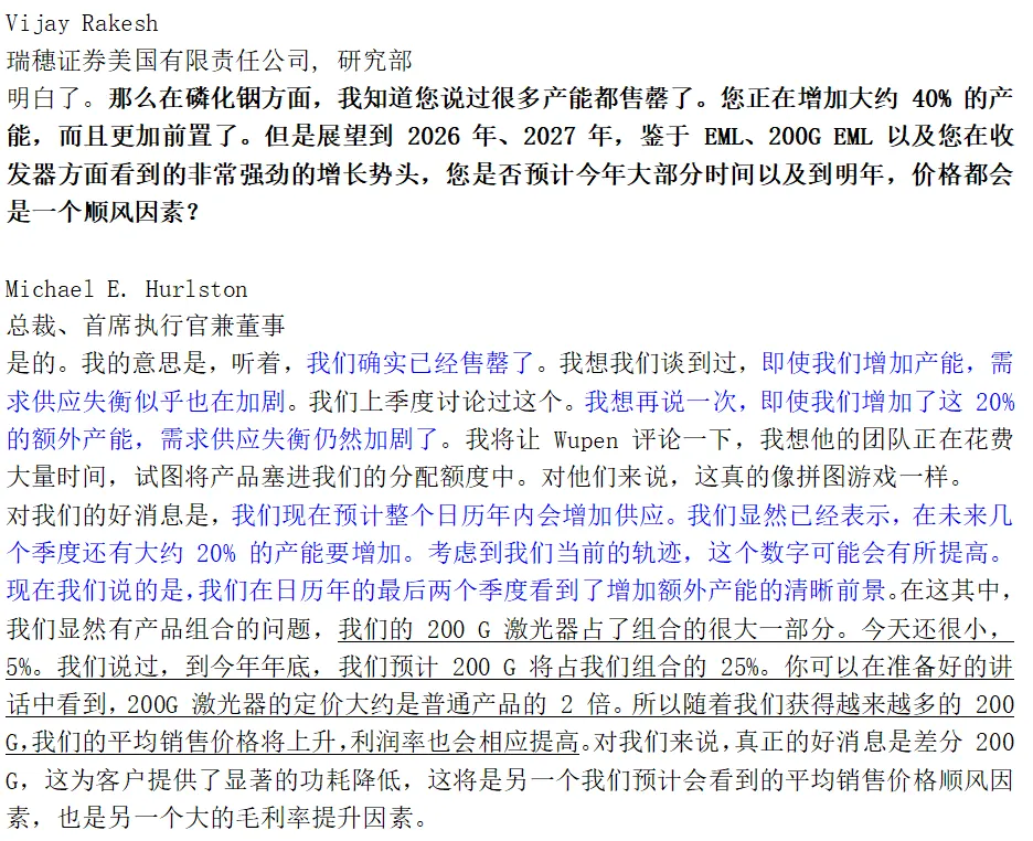 来源:截图部分来自20260204 Lumentum2025Q4财报电话会
