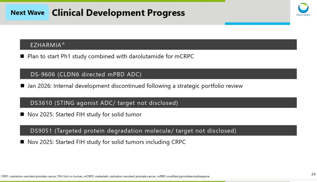 目前预计报告时间已从原定的 2025 年、后延至 2026 年上半年,再次推迟至 2026 年下半年。第一三共株式会社表示,推迟公布的原因是事件发生速度低于预期。