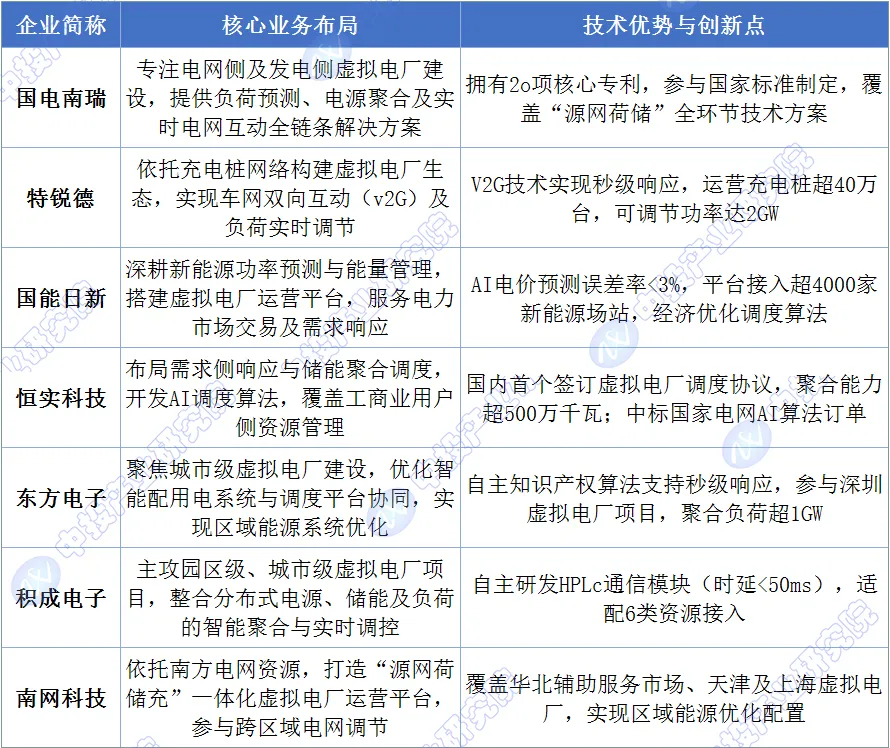 图表:中国虚拟电厂行业重点企业业务布局