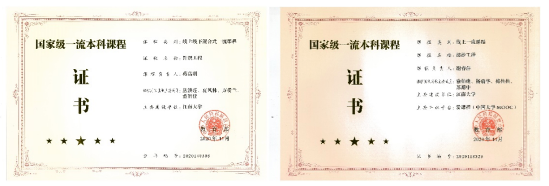 国家级课程建设。加强国家级一流专业建设和卓工计划培养需求,建设了《纺纱工程》、《机织工程》、《针织工程》、《纺织材料学》等国家级一流本科课程,实现了纺织工程核心课程全覆盖。另外,《染整工艺原理》、《喷气织机虚拟仿真实验》、《基于全流程虚拟教学系统的纱线产品设计》等6门课程为国家级一流本科培育课程。