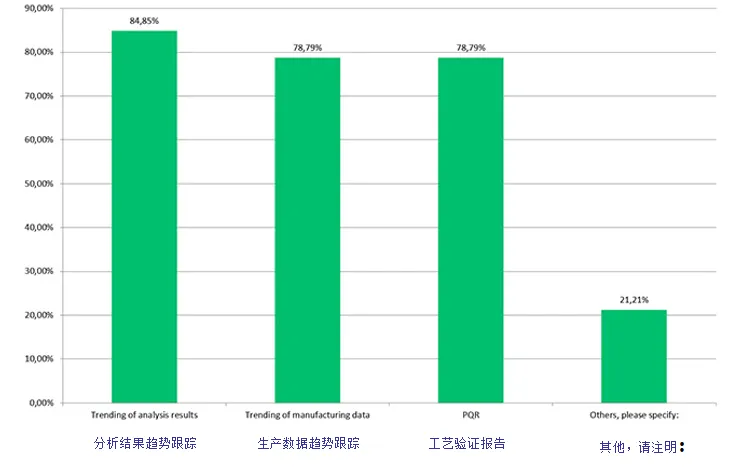 The "Other" responses included: Complaints, Suitability of specifications/validation, "Continuous Process Verification", Stability testing, Deviation investigations, Continued process validation.