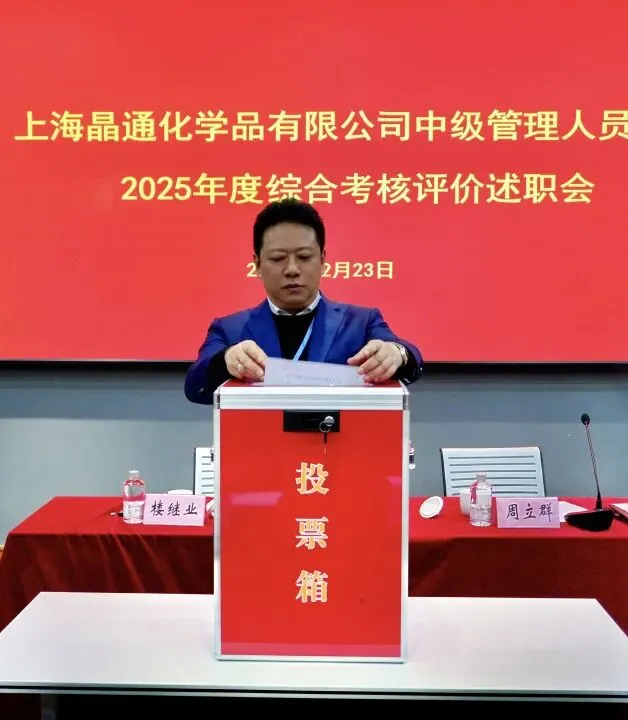 晶通化学围绕年度工作概述、重点工作完成情况、存在问题及2026年工作规划逐一述职,既亮出“成绩单”,也直面“问题账”,考评从“政治素质、履职能力、工作实绩、作风建设、廉洁自律”等维度展开。在肯定年度工作的同时,对干部提出强化理论学习、聚焦主营主业、压实责任担当三点要求,并强调述职测评是对干部的一次全面“政治体检”和“工作盘点”,旨在达到“以述促干、以评促改”的效果,并通过此次年度会议凝聚了发展共识,干部们表示将以此次测评为新起点,在“十五五”开局之年展现新担当、实现新作为。