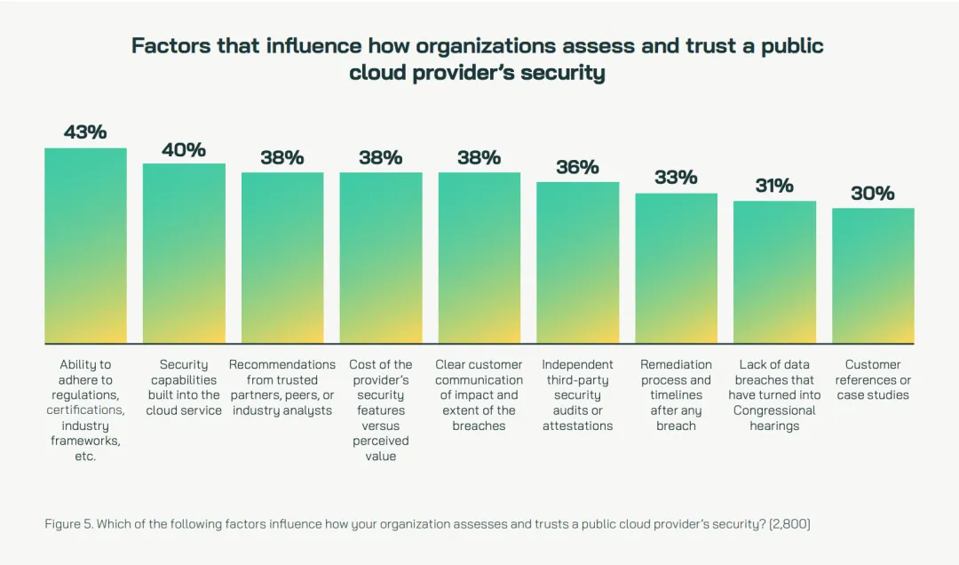 影响组织评估和信任公共云提供商安全性的因素,图片源自报告