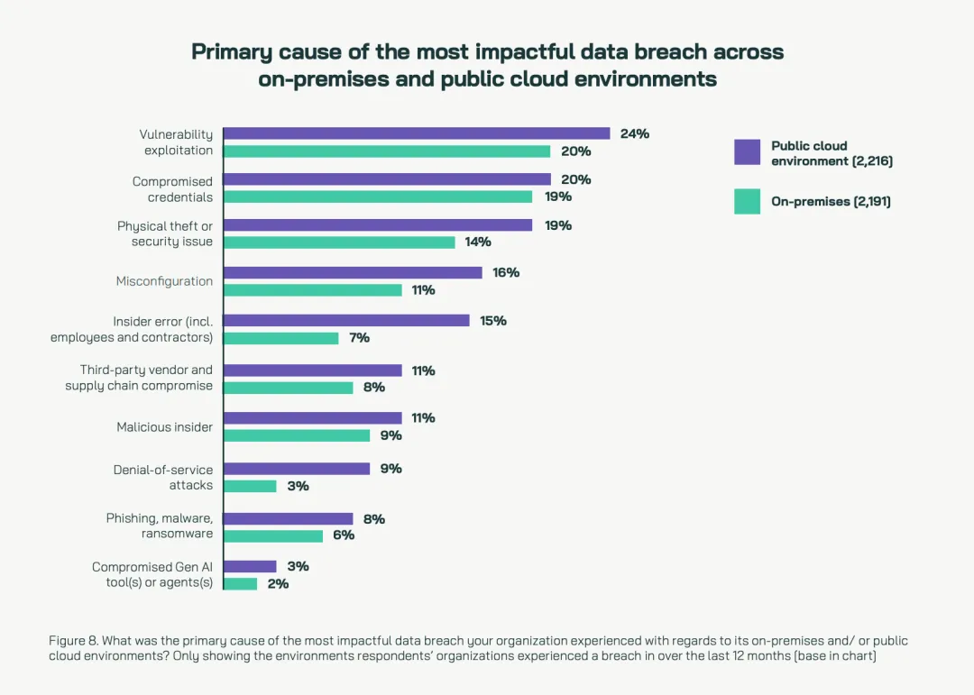 在本地和公有云环境中造成最大影响的数据泄露的主要原因,图片源自报告